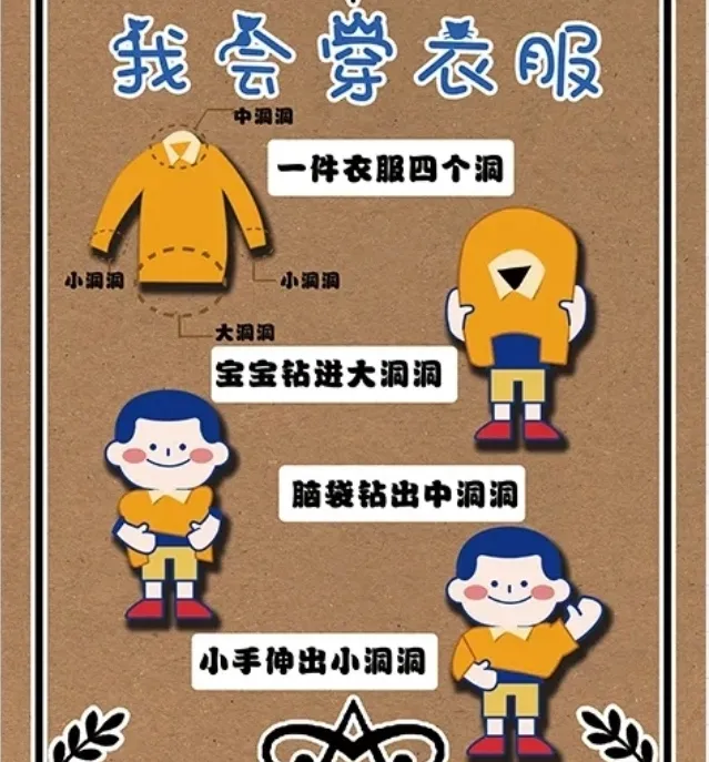 学习自己独立穿脱衣物可以帮助孩子更好地适应幼儿园生活,提高孩子的生活自理能力,带给孩子满满的成就感。