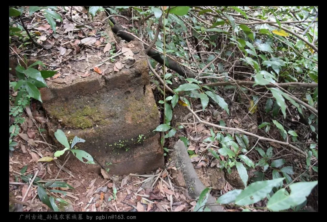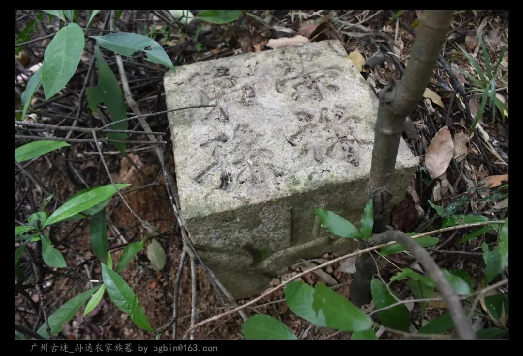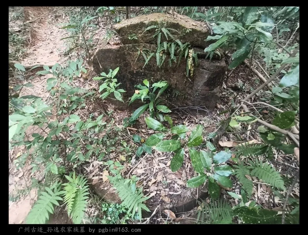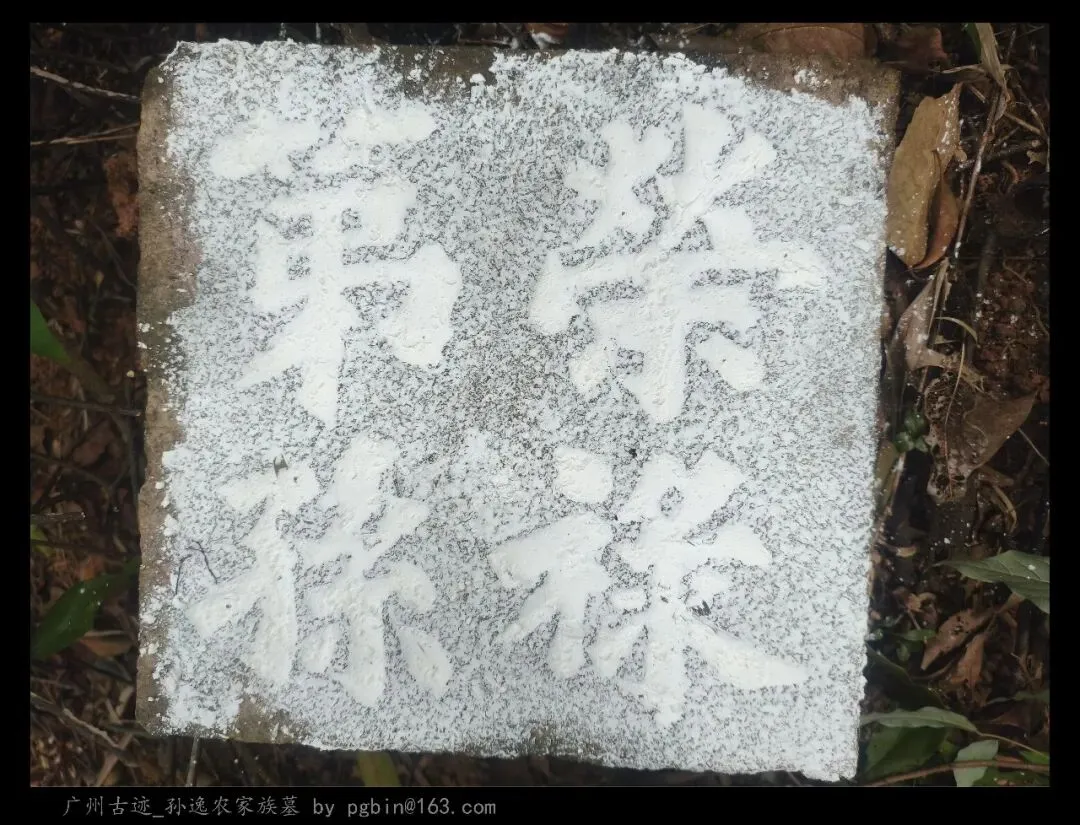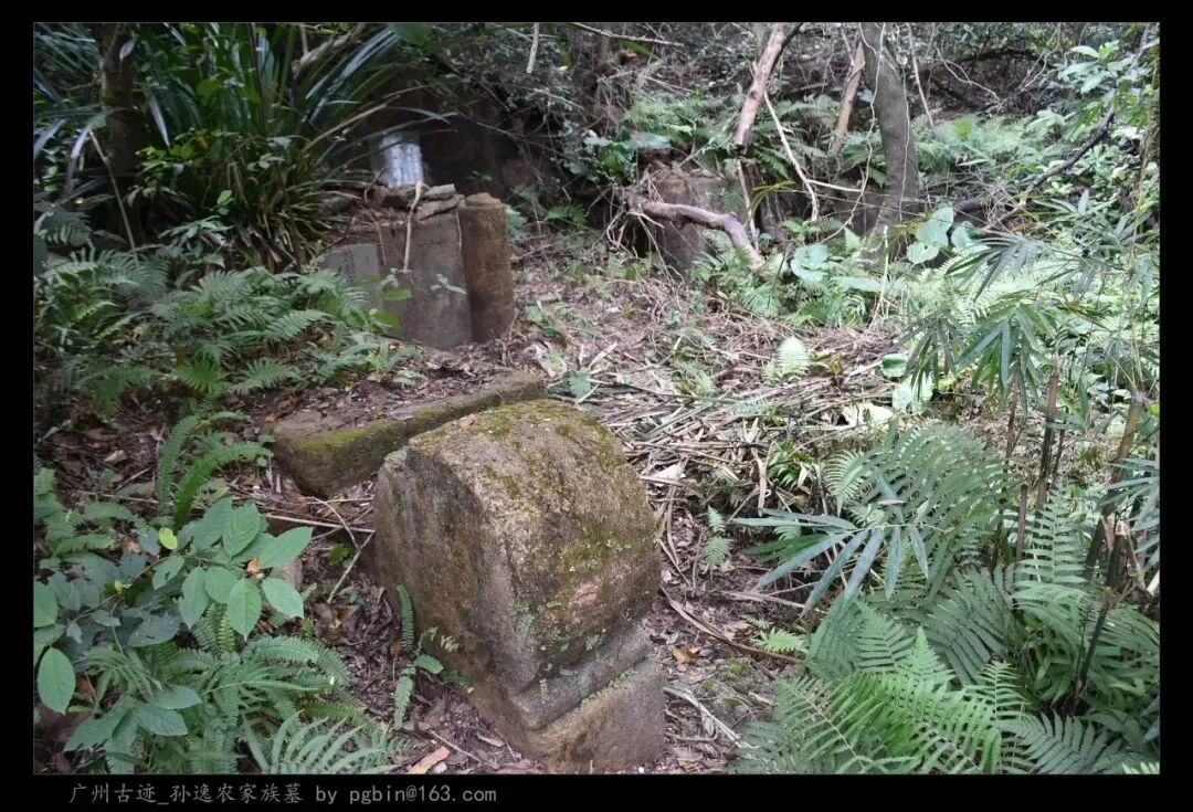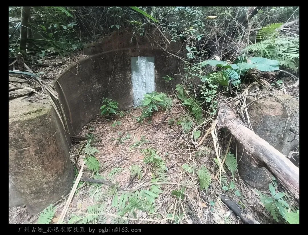 探访侧记:孙逸农墓位于白云山黄婆洞,坐东朝西偏北,是一座中型灰砂交椅墓,由华表、月池、山手、环垄、护岭、后土组成。