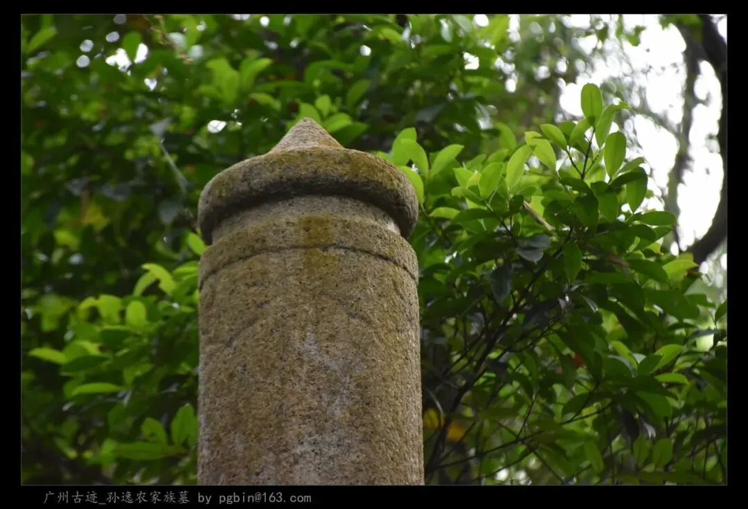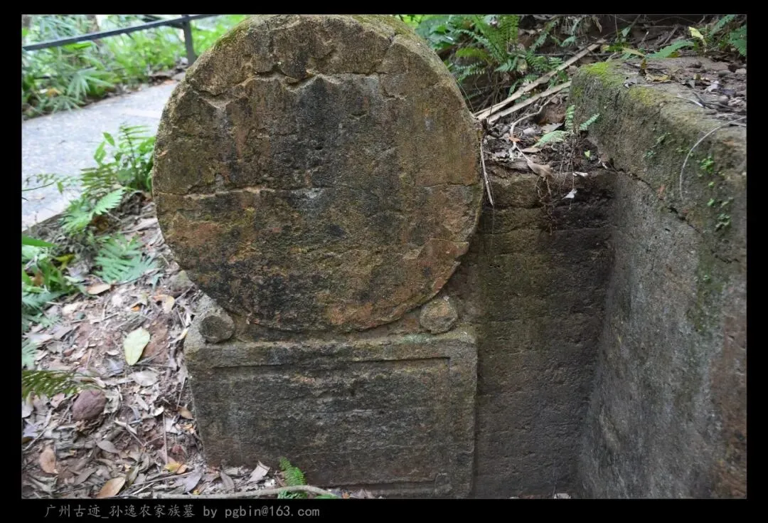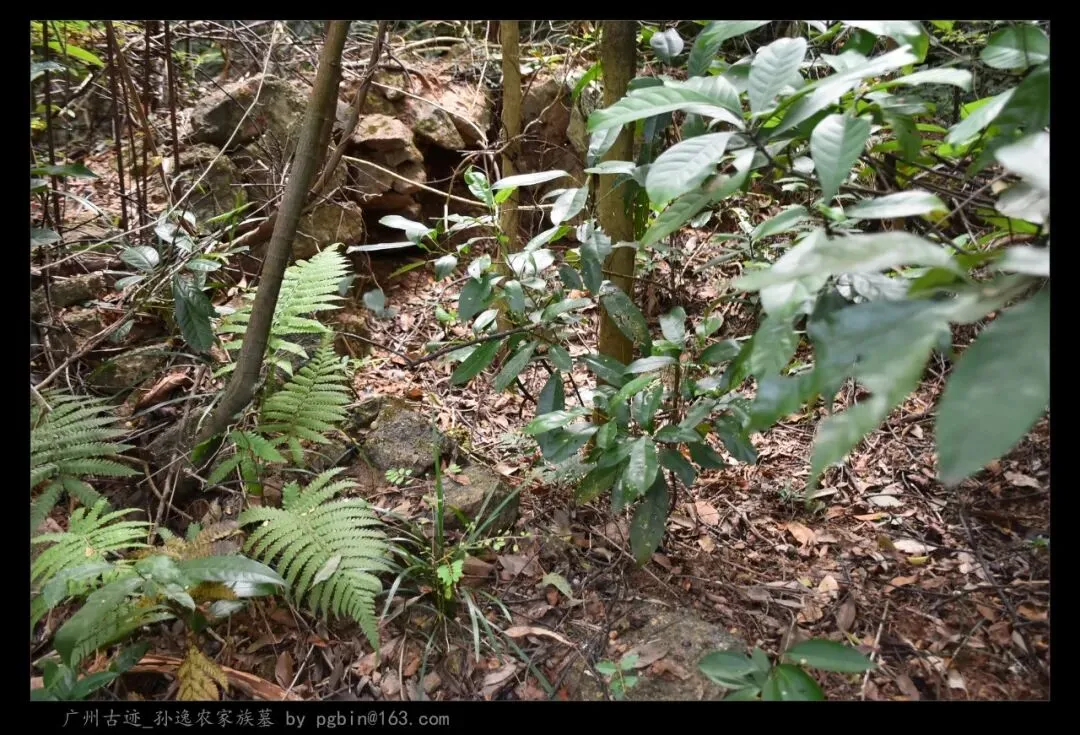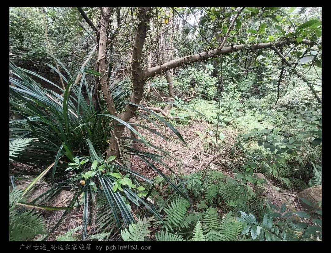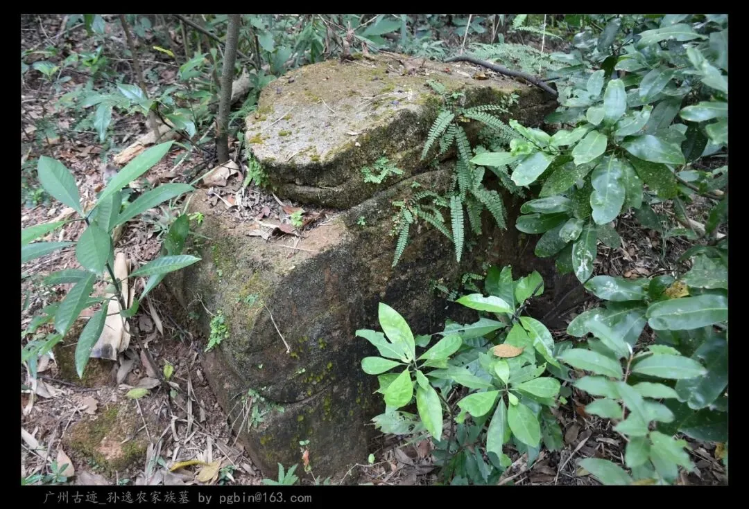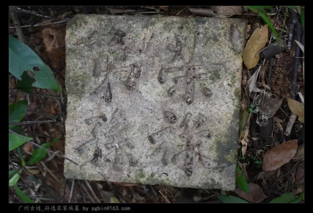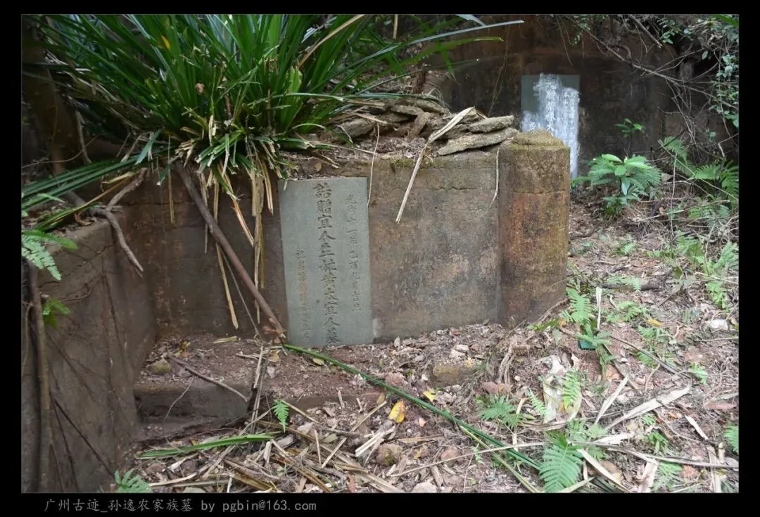 探访侧记:孙逸农墓位于白云山黄婆洞,坐东朝西偏北,是一座中型灰砂交椅墓,由华表、月池、山手、环垄、护岭、后土组成。
