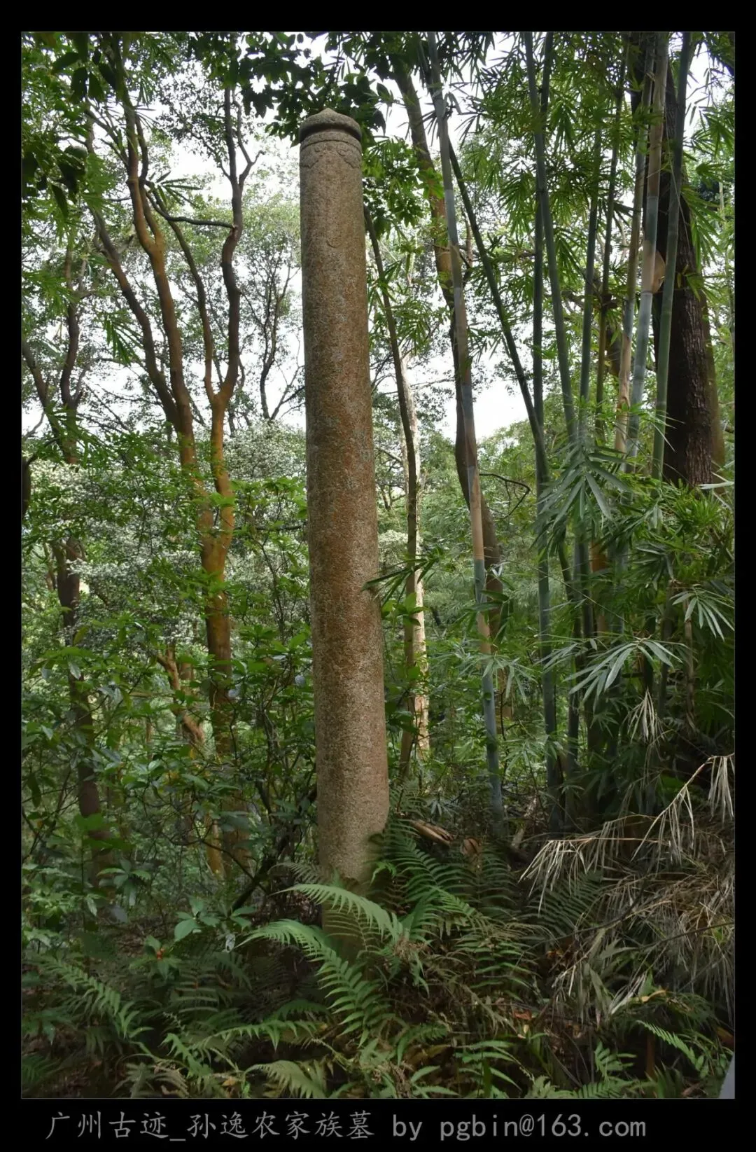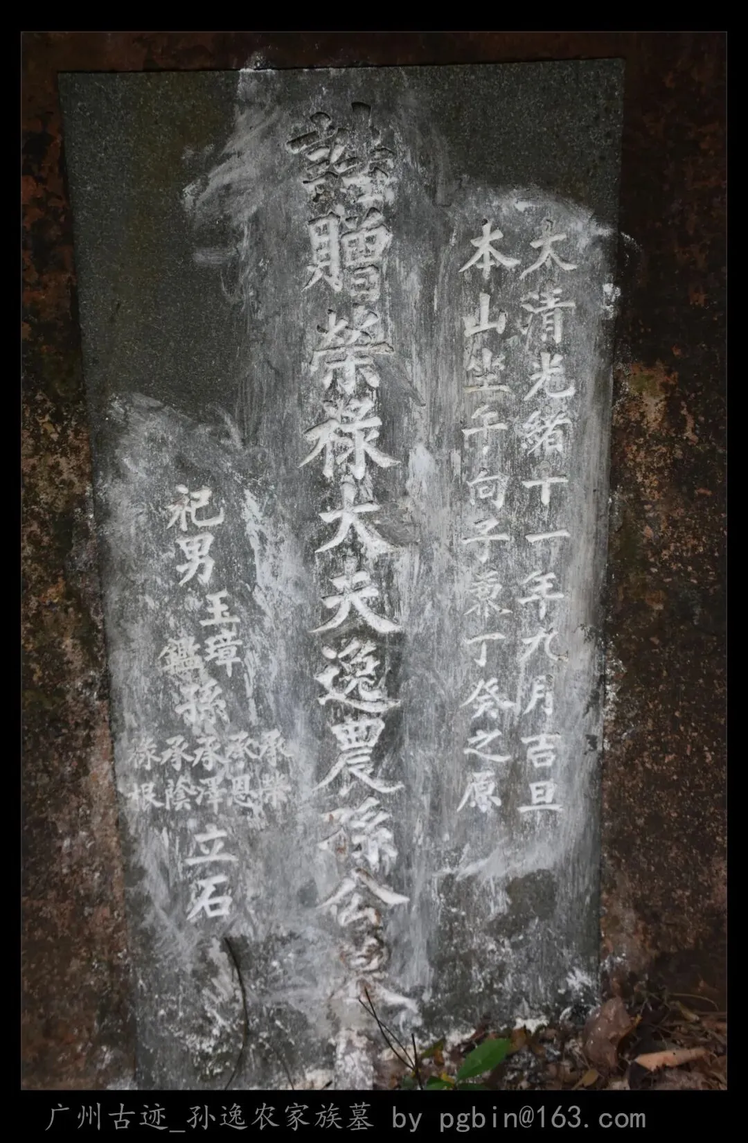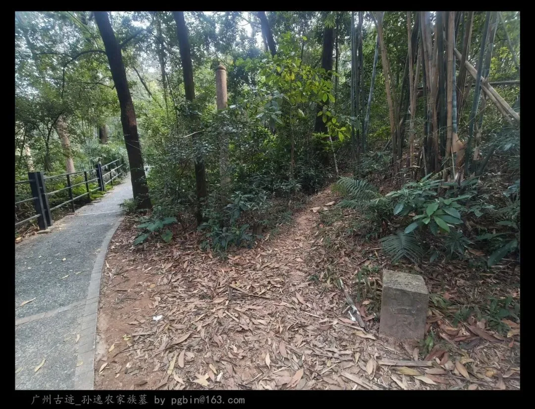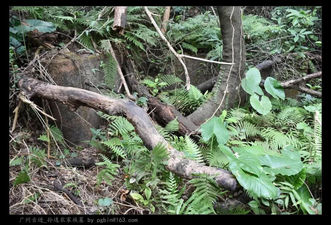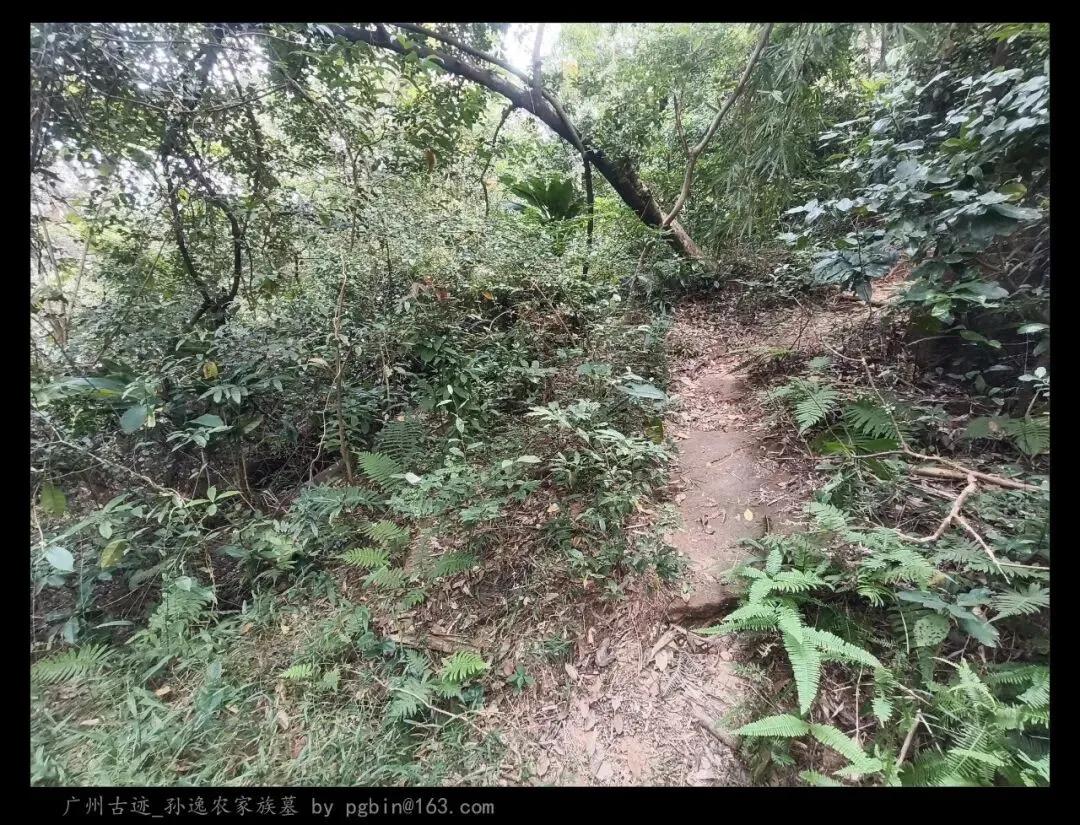 探访侧记:孙逸农墓位于白云山黄婆洞,坐东朝西偏北,是一座中型灰砂交椅墓,由华表、月池、山手、环垄、护岭、后土组成。