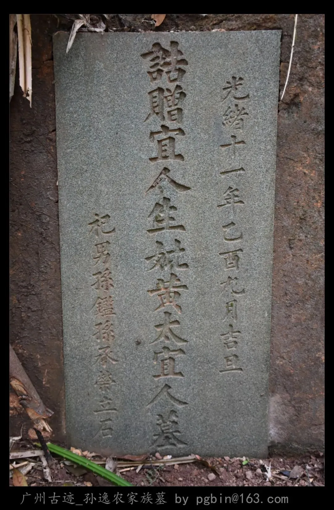 墓葬四周放置“榮禄第孙山界”山界,荣禄大夫是从一品封赠,山上并不多见。月池两侧放置一对圆墩尖顶圆柱状望柱。山手前端砌抱鼓石,右侧挂榜附葬黄太宜人,刻“誥贈宜人生妣黃太宜人墓”,上款“光緒十一年乙酉九月吉旦”,下款“祀男孫鑑孫(孫承)榮立石”。环垄正中放置青石墓碑,刻“誥贈榮祿大夫逸農孫公墓”,上款“大清光緒十一年九月吉旦本山坐午向子兼丁癸之原”,下款“祀男(孫)玉璋孫鑑孫(孫承)榮(孫承)恩(孫承)澤(孫承)蔭(孫承)根立石”。墓后一级护岭,两侧有后土碑遗址的痕迹。