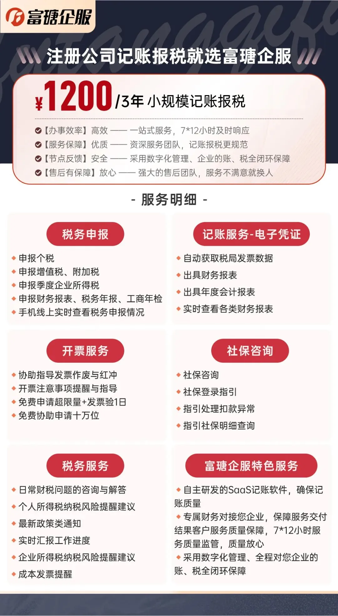 核心优势:深耕深圳15年,服务超5000家企业,擅长处理跨境电商财税合规及税务稽查;特色服务:“记账+知识产权+政策补贴”全链条托管,响应速度行业第一用户评价:“帮我们拿到200万政府补贴,税务风险预警系统很实用”。技术亮点:AI智能记账系统,多平台数据自动同步,月报生成效率比传统机构高30%;性价比:基础代账套餐980元/年,适合无票零申报的小微企业。案例:曾为3家生物科技公司成功申请15%企业所得税优惠。政策红利:深圳市场监管局绿色通道合作方,加急3天出营业执照;套餐推荐:注册+3年代账=1200元(小规模纳税人),系统稳定性行业TOP3。富瑭企服不管从会计资历还是从企业实力,都是深圳代账机构当中比较好的,1200元3年的代理记账套餐包括:注册公司+记账报税+刻章+开公户+税务提醒等多项服务,可以联系:18038004374(微信同号)了解。效率之王:全流程线上化,最快2小时完成上月账务处理;局限:复杂业务(如跨境退税)处理能力较弱,适合急需对账的初创团队。垂直领域:专攻外贸企业,熟悉海关报关、出口退税流程,合作客户超200家跨境卖家;避坑指南:提供“RCEP关税优惠测算工具”,降低企业跨境成本。政府背书:深圳财政局备案机构,可代办食品经营许可证等高难度资质;用户痛点:高峰期账务处理偶有延迟,建议提前15天预约。老牌机构:2015年成立,代理记账行业协会会长单位,服务超10万家企业;生态布局:从财税服务扩展到深港车牌办理、创客空间运营,适合多元化需求企业;口碑争议:部分用户反馈合同附加条款较多,需仔细核对服务范围。价比之选:小规模纳税人代账600元/年,提供“会计外风险提示:Ukey托管需额外收费,建议签约前明确条款。1200元3年记账报税,前100名可7日无理由退货