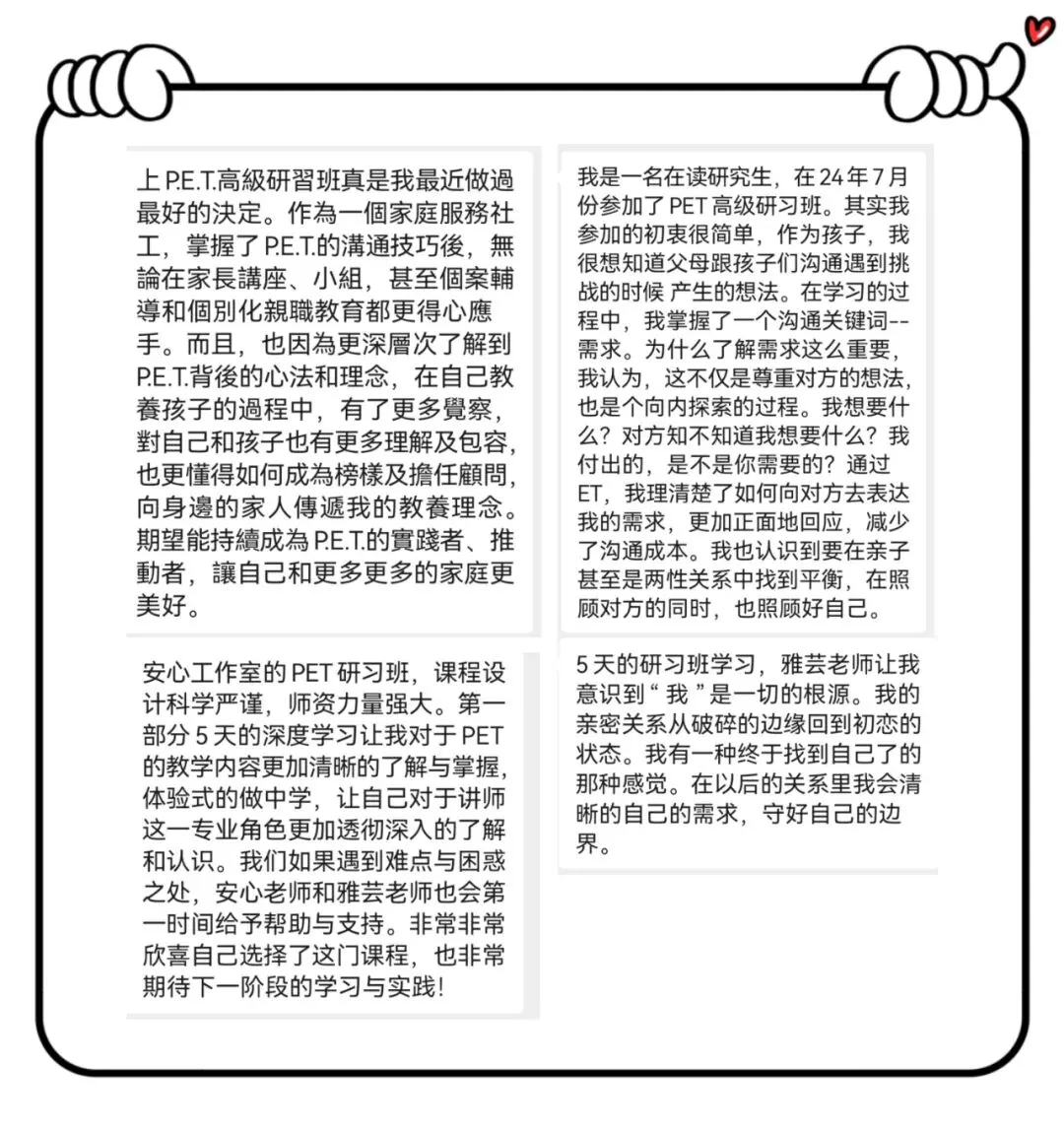 【P.E.T.父母效能训练高级研习班】是成为讲师的第一阶段课程,由中国四大代理共同推出并独家授课,仅限授权举办。