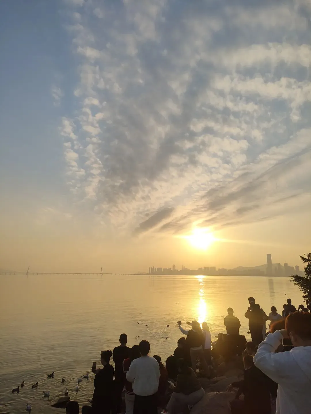 今天和姐妹冲了深圳湾公园,先追着成群的海鸥跑了大半个海岸,这些小家伙在波光里翻飞,伸手仿佛就能触到羽翼的轻盈~等到傍晚,橘色夕阳慢慢沉向海面,金光把海水染成蜜糖色,岸边的礁石上站满了同赴这场落日之约的人,快门按到停不下来。