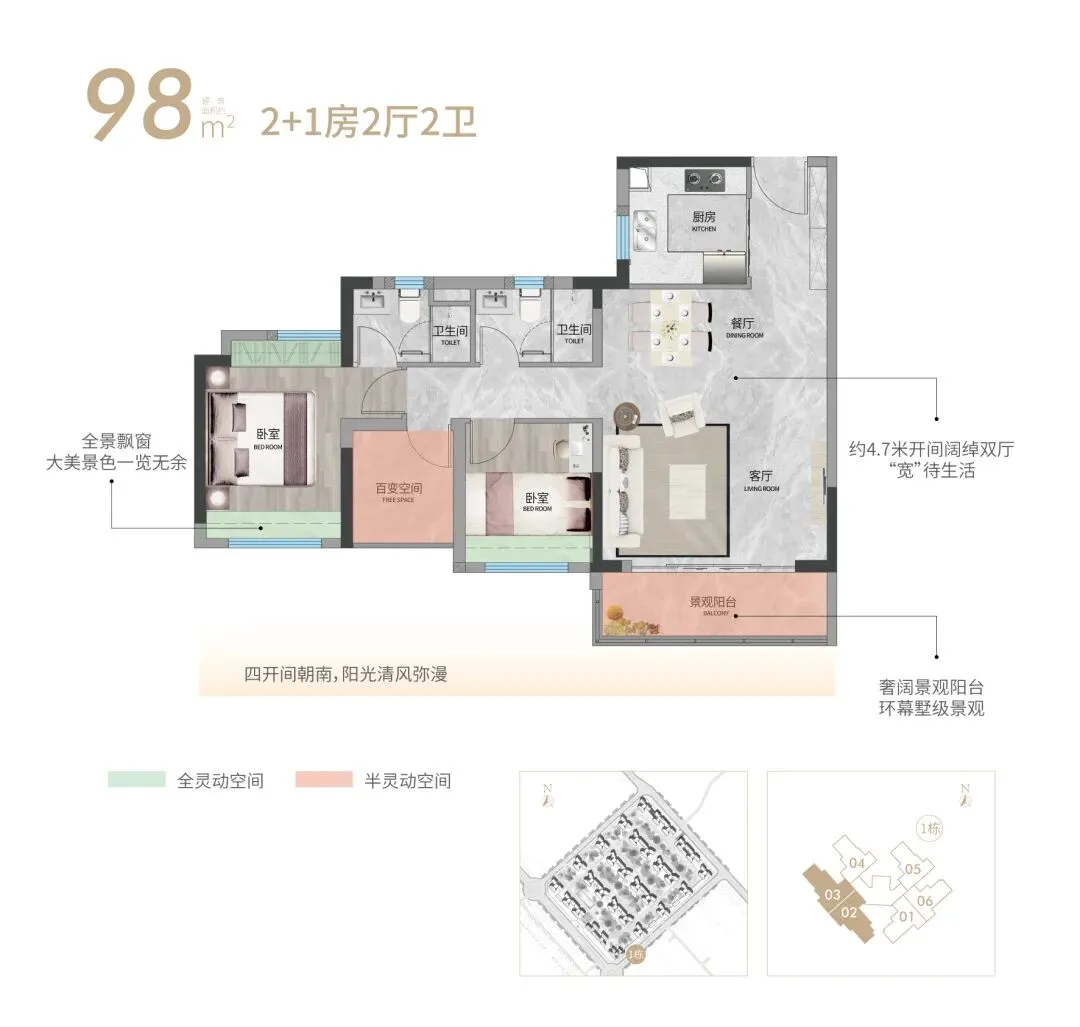 『98㎡ | 2+1房2厅2卫』