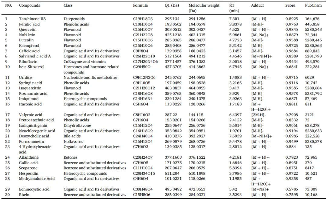 表2通过UPLC-ESI-MS法鉴别SGXZ汤的化学成分。