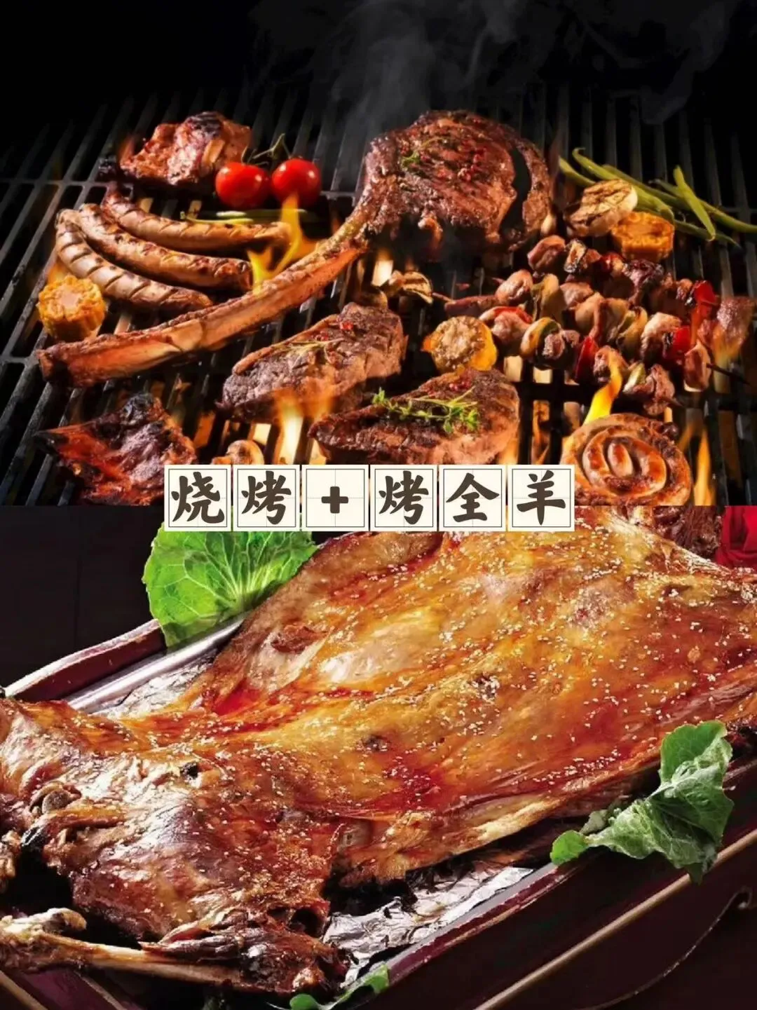 烤全羊专业师傅现烤现吃,历时4小时,需要提前定。