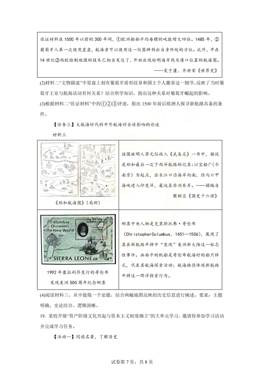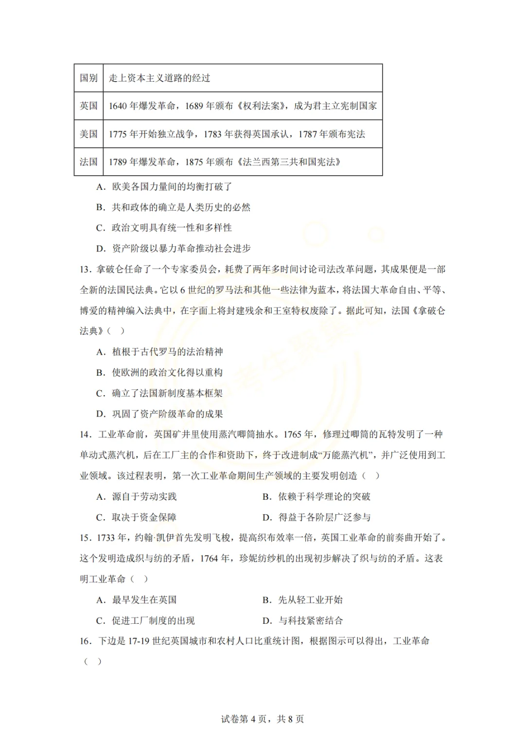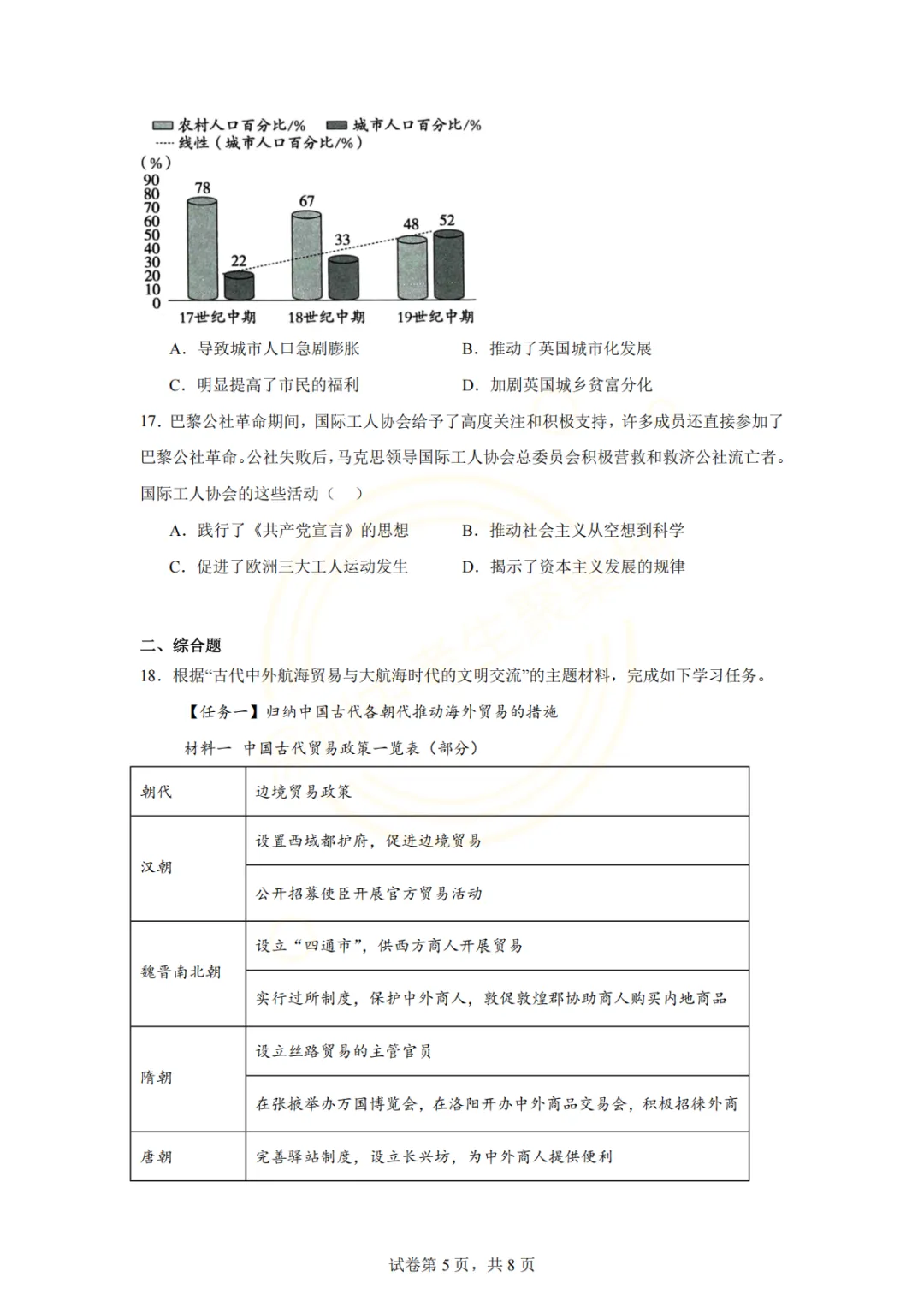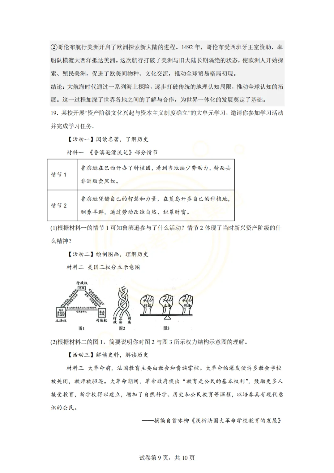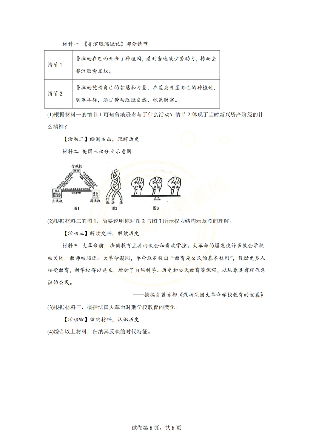 深圳市2026年历史试卷(一个初中学校的月考试题)