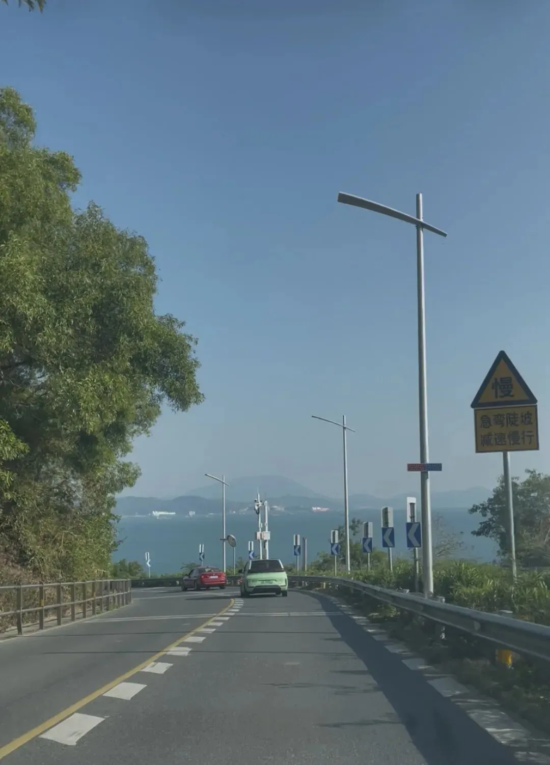 从双拥码头往鹅公古村走的着一段盘山公路,真的是九曲十八弯,且上下坡陡,很考验车技啊。还好不是我开车,😁。