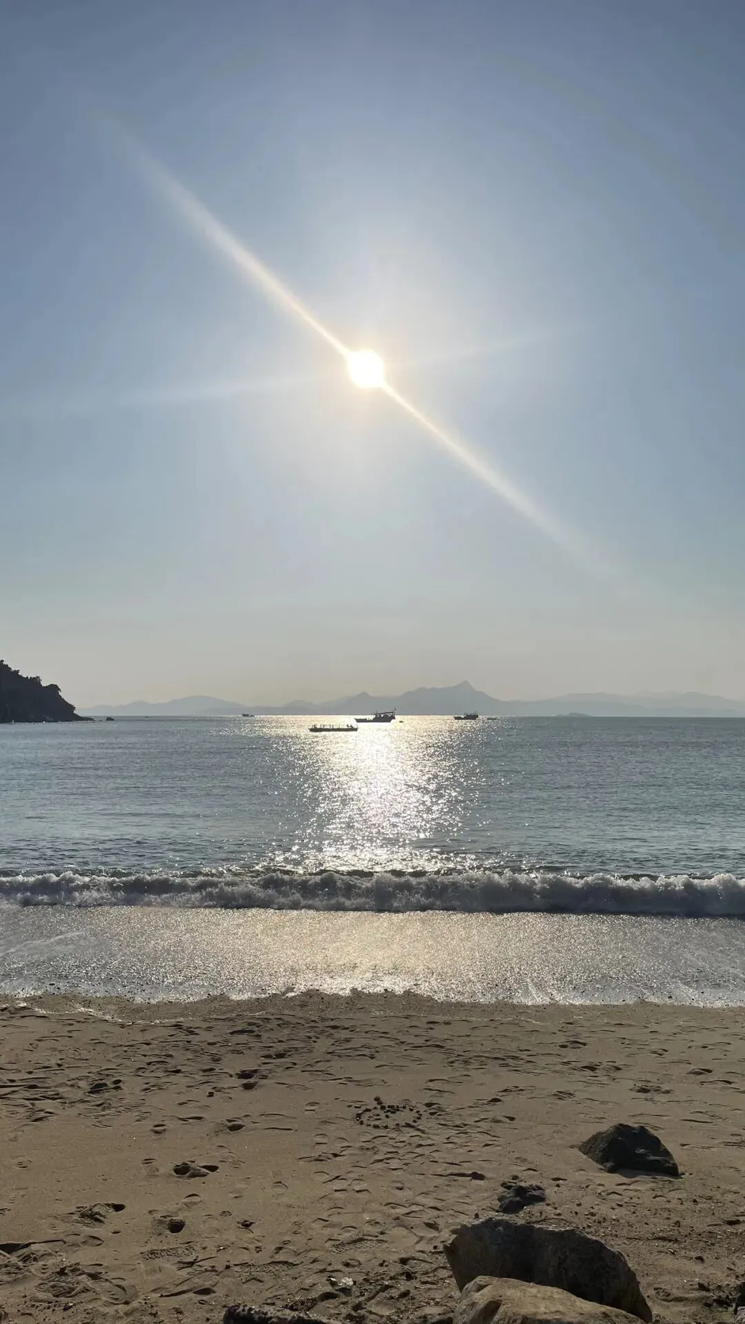 我们到达海滩的时候已经是下午四点,当时的太阳照在海面上,波光粼粼。沙滩上人不多,海风吹拂,太阳晒的让人感觉懒洋洋的。