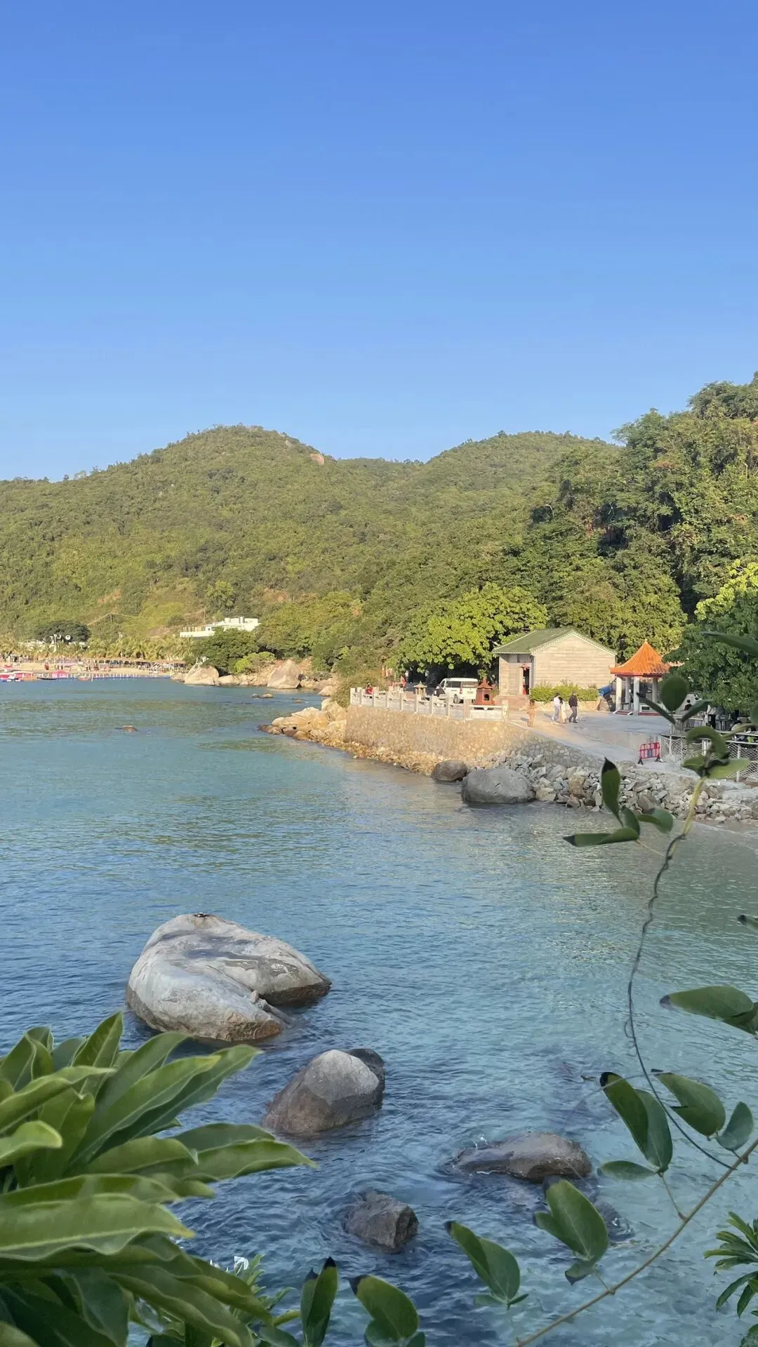 导航到古村位置,结果发现围挡封闭着,显示改造,看路况也不好掉头,赶紧看地图,发现往前开就是鹅公湾海滩,之前网上看到鹅公湾海滩算是半开发海滩,海滩比较漂亮的,SO我们决定那就继续往前走吧。