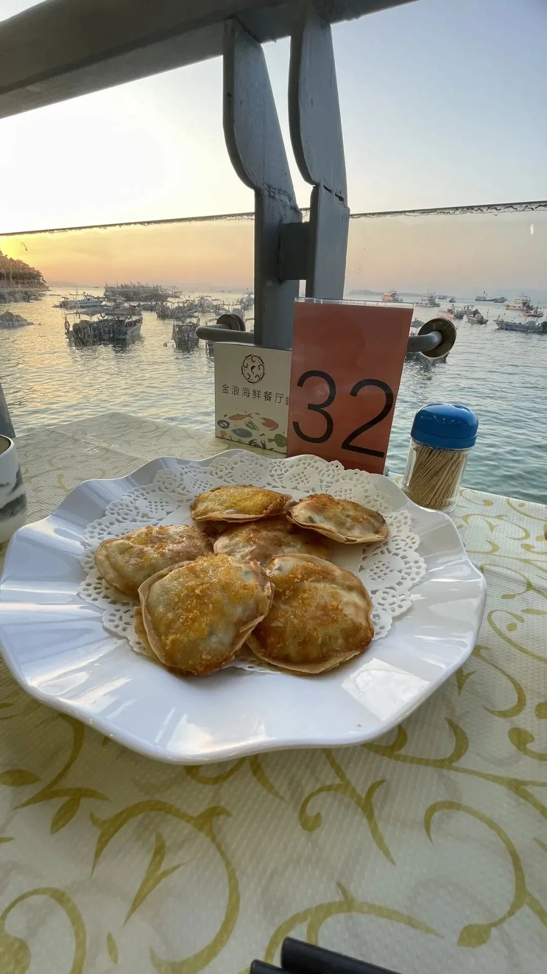 回来到双拥码头,我们走到卖海鲜那边问了,在那边买海鲜要走到岭上去加工,感觉有点距离,最后选择在金浪海鲜全景餐厅吃晚饭,有个免费停车场,而且看套餐还蛮划算的,人均八十多。菜的味道也不错,杂鱼汤鲜美,椒盐海虾香脆,扇贝也好吃。