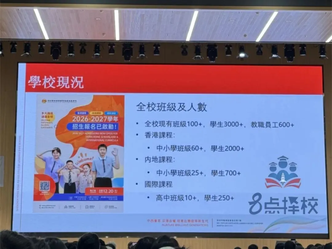 培侨目前学校人数已达3000+,港籍班2000+,内地班700+,国际班250+,规模大且学位紧张。在简介会的现场问答环节,不少家长追问招生名额,吴校长表示,除了小一、初一,其他年级不扩班,但如果报名人数超出预期,学校会启用“灵活扩班计划”,有可能每个年级增设1-2个班。