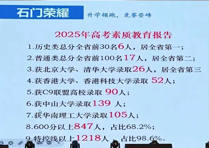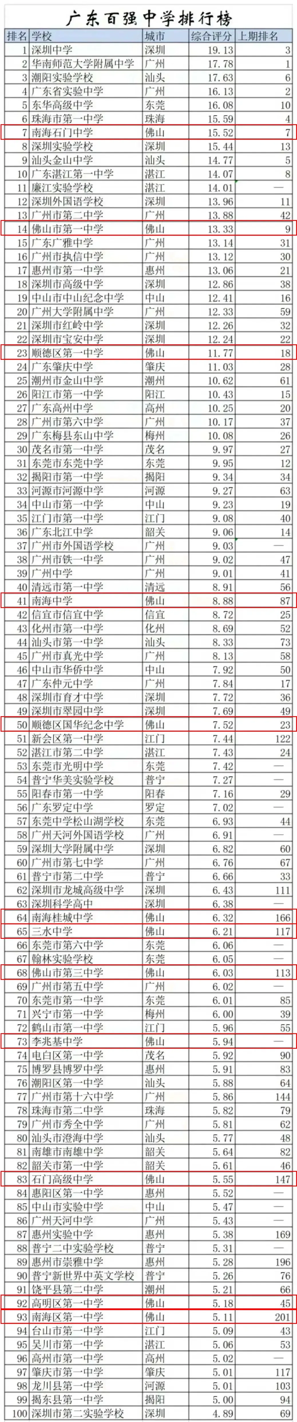 值得一提的是,佛山的石门中学此次超越了汕头金山中学,成功跻身榜单前十,最终排在了第7位。