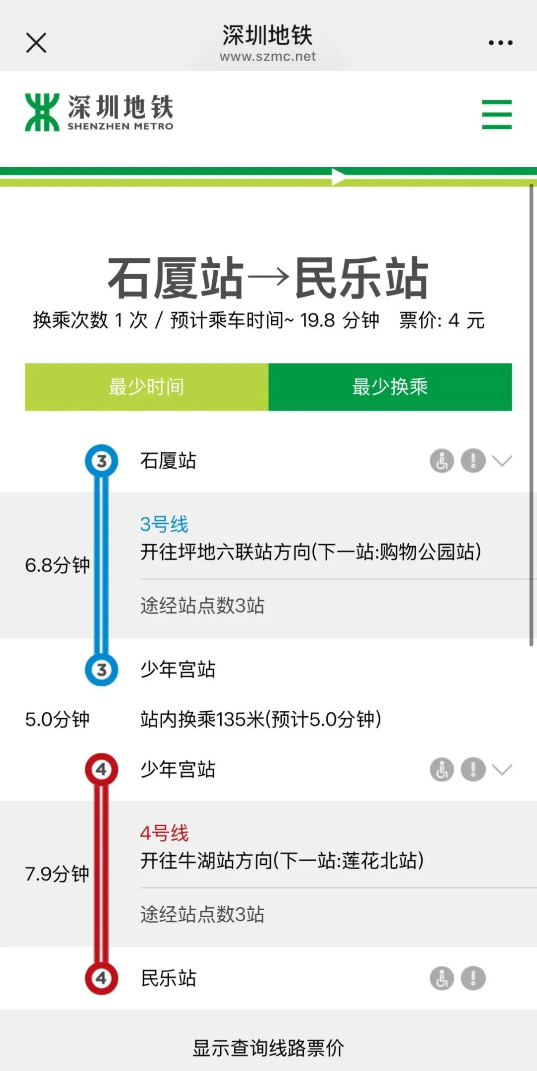 可以在深圳地铁公众号,点击菜单栏【乘车指南】,选择“乘车查询”。