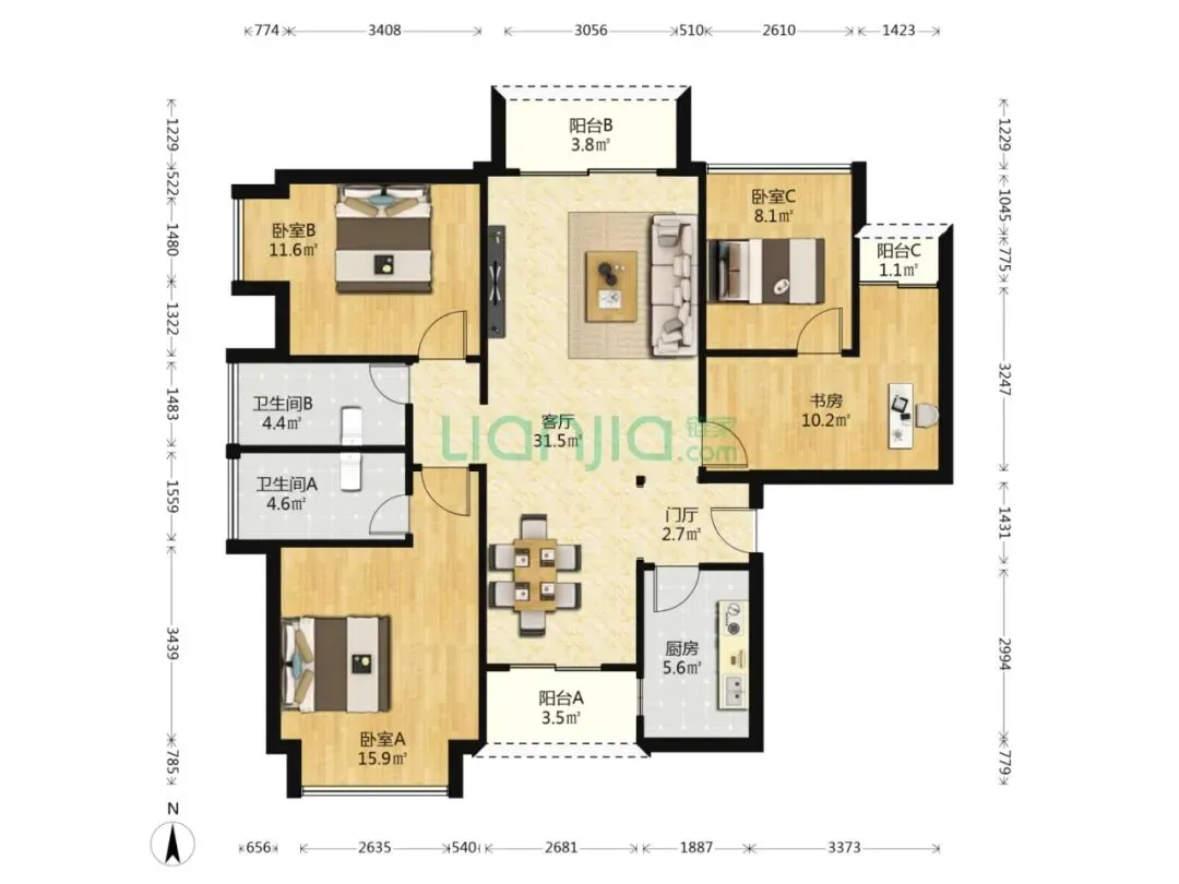 【户 型】4房2卫