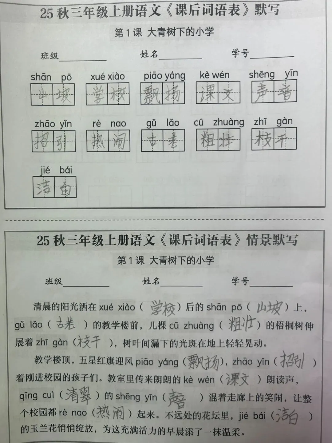 每日课后词语表默写,每日课文熟读打卡,练习巩固自己薄弱环节