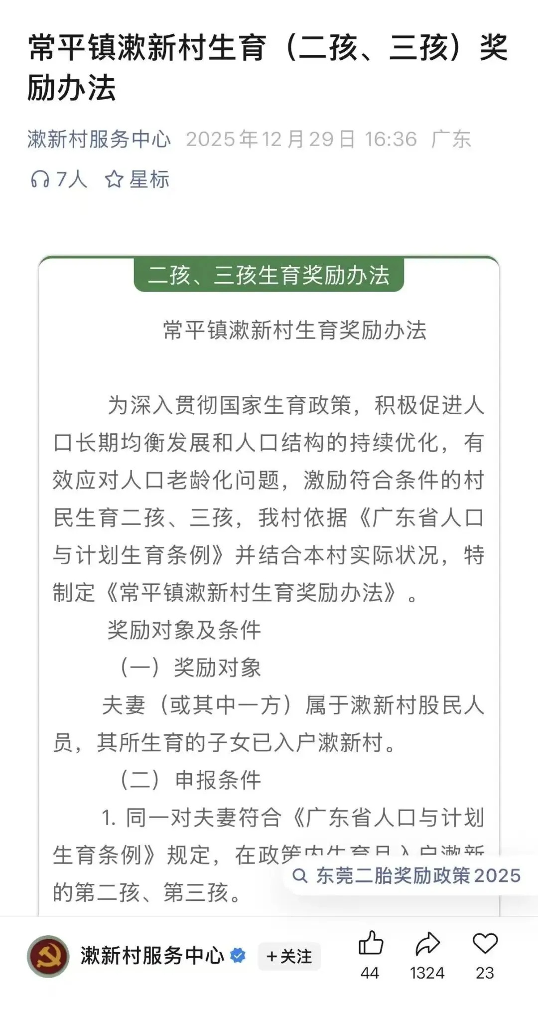 此前,长安镇厦边社区、厚街镇陈屋社区、寮步富竹山村、大朗求富路社区、万江新村、横沥新四黄塘村等,也出台了育儿补贴,1万-6.8万不等。