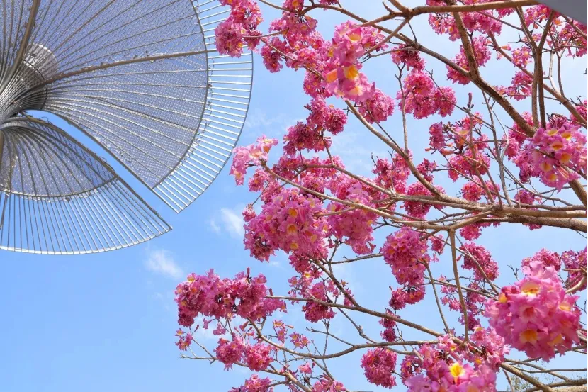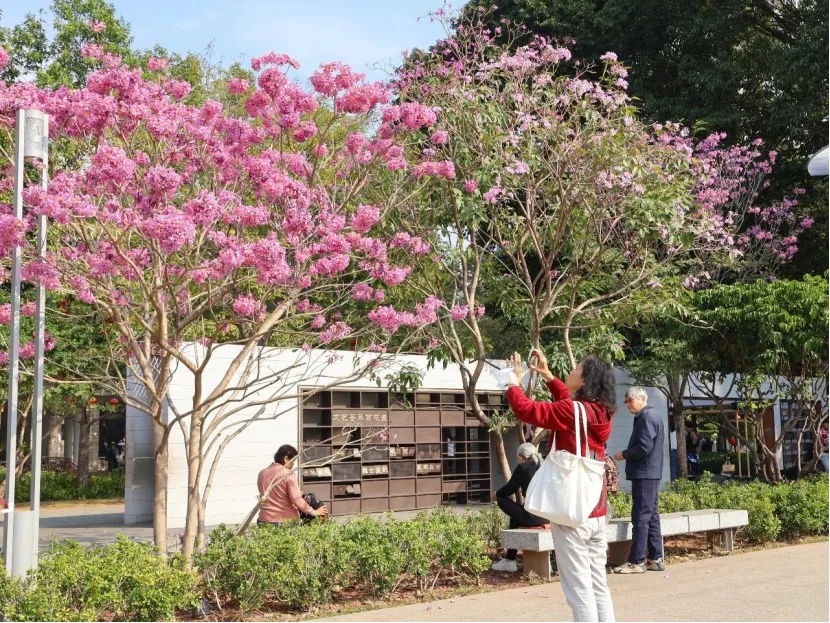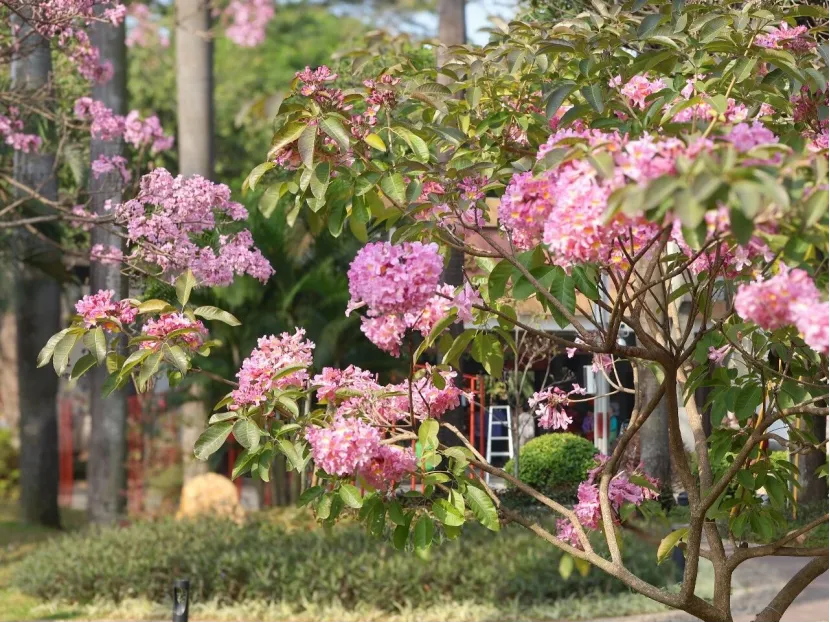 据了解,紫花风铃木的花期颇长,盛花期在12月至次年2月,花期将经历冬至、元旦、春节和元宵节等节日,为节日增添浓厚的喜庆氛围。
