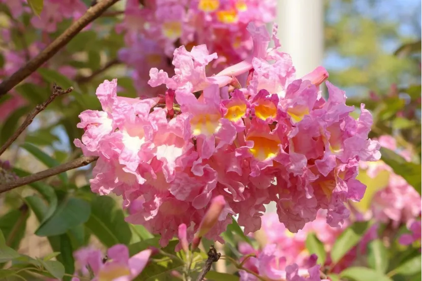 紫花风铃木的花语为感恩、吉祥、生机盎然,在万物萧瑟的冬季绽放,象征着希望与对生活的感恩之情,也正因如此,它成为了不少市民冬日赏花的首选。