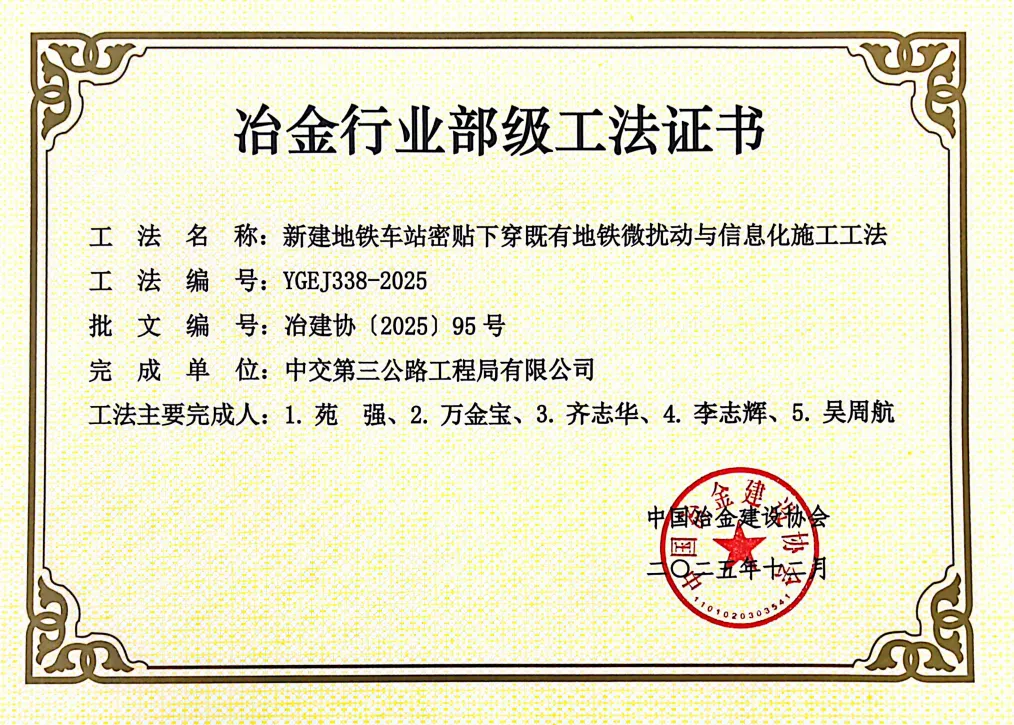 “此次获奖是荣誉更是鞭策,”项目部技术负责人表示,“我们将以此次获奖为契机,进一步总结优化工法技术细节,做好成果转化与推广应用工作,持续深耕轨道交通施工技术创新,以科技赋能工程建设,为打造更多安全、高效、绿色的城市轨道交通工程贡献力量。”