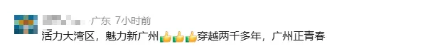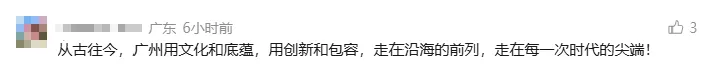 有网友表达对广州文化底蕴和时代风貌的认同:“广州不只有CBD,广州更有很深的文化底蕴。为广州点赞。”“从古往今,广州用文化和底蕴,用创新和包容,走在前列。”