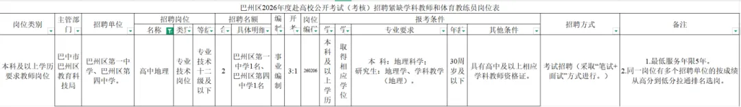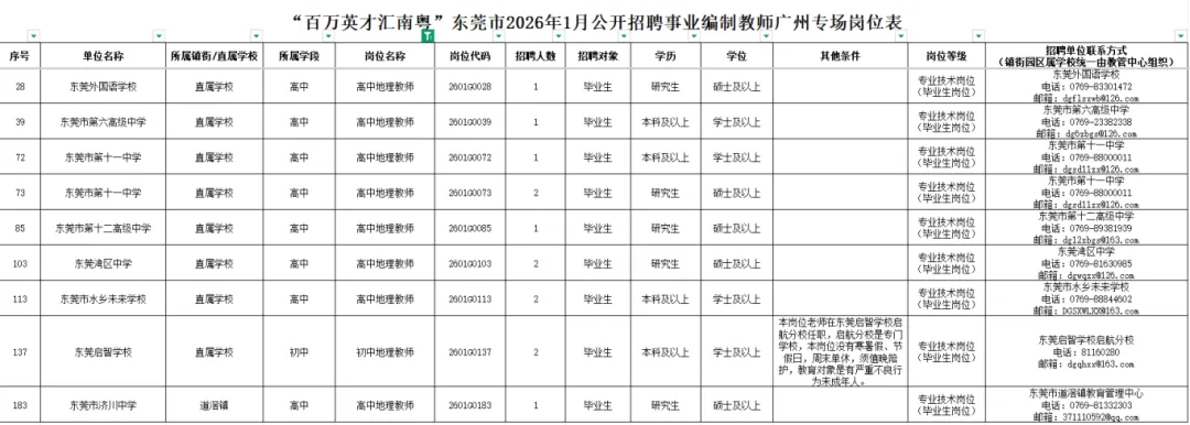 “百万英才汇南粤”东莞市2026年1月公开招聘事业编制教师广州专场公告高中地理教师11人,初中地理教师2人