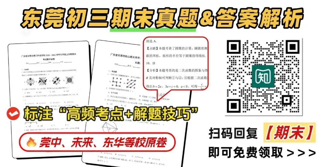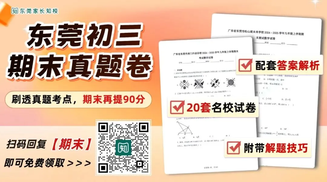 📣小知给大家收集整理了20套往年东莞初三各校期末试卷,7科齐全;附赠答案解析,还有“考点汇总&答题技巧”。