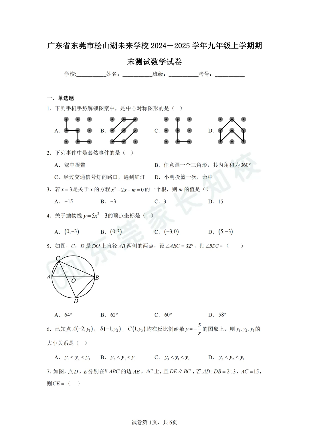 <松山湖未来>数学试卷+答案