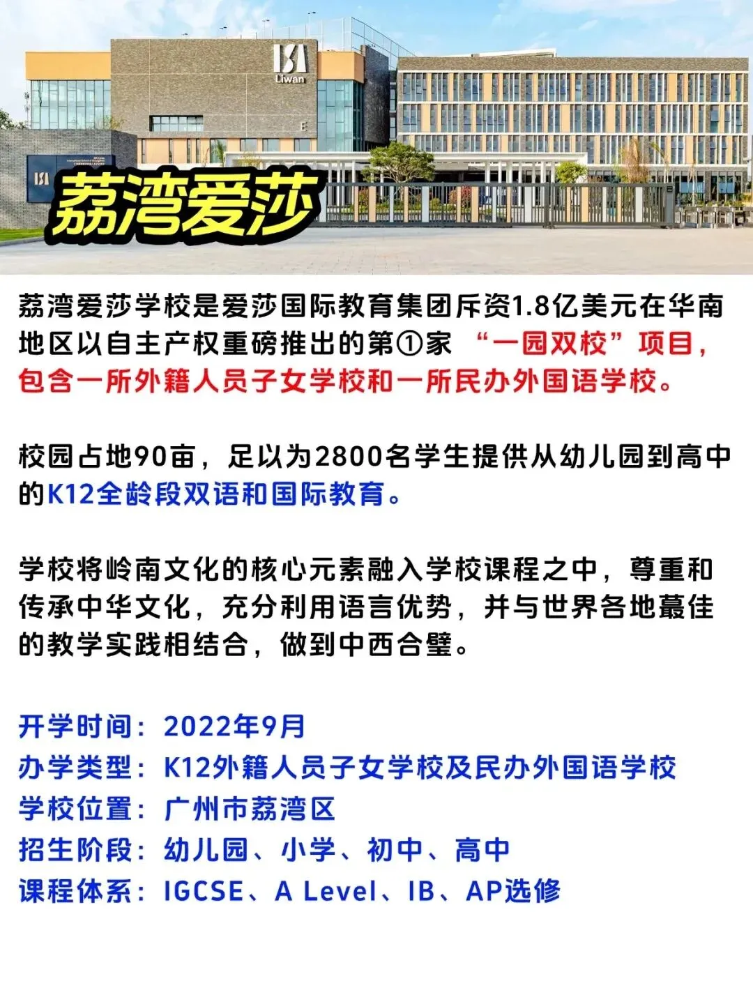 天河爱莎、科学城爱莎、广外爱莎IB、爱莎荔湾