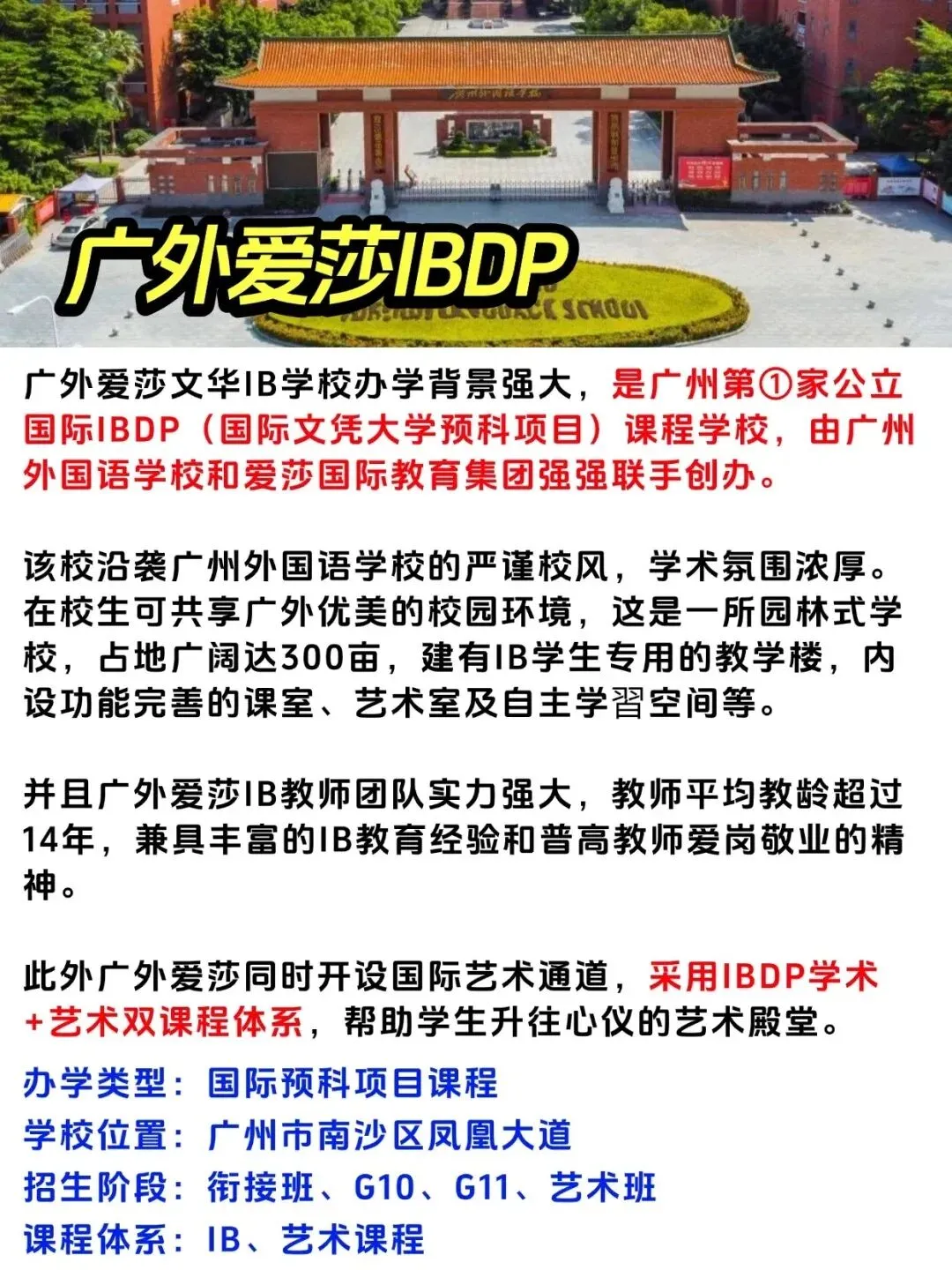 南沙区:广外爱莎IB