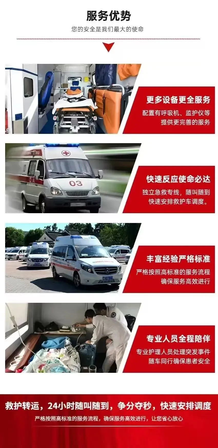 (2)快速响应使命必达:开通医疗专线,24小时随叫随到,让病人的出行不再孤立无援,我们的非紧急救护车转运快速响应,快速安排救护车调度。