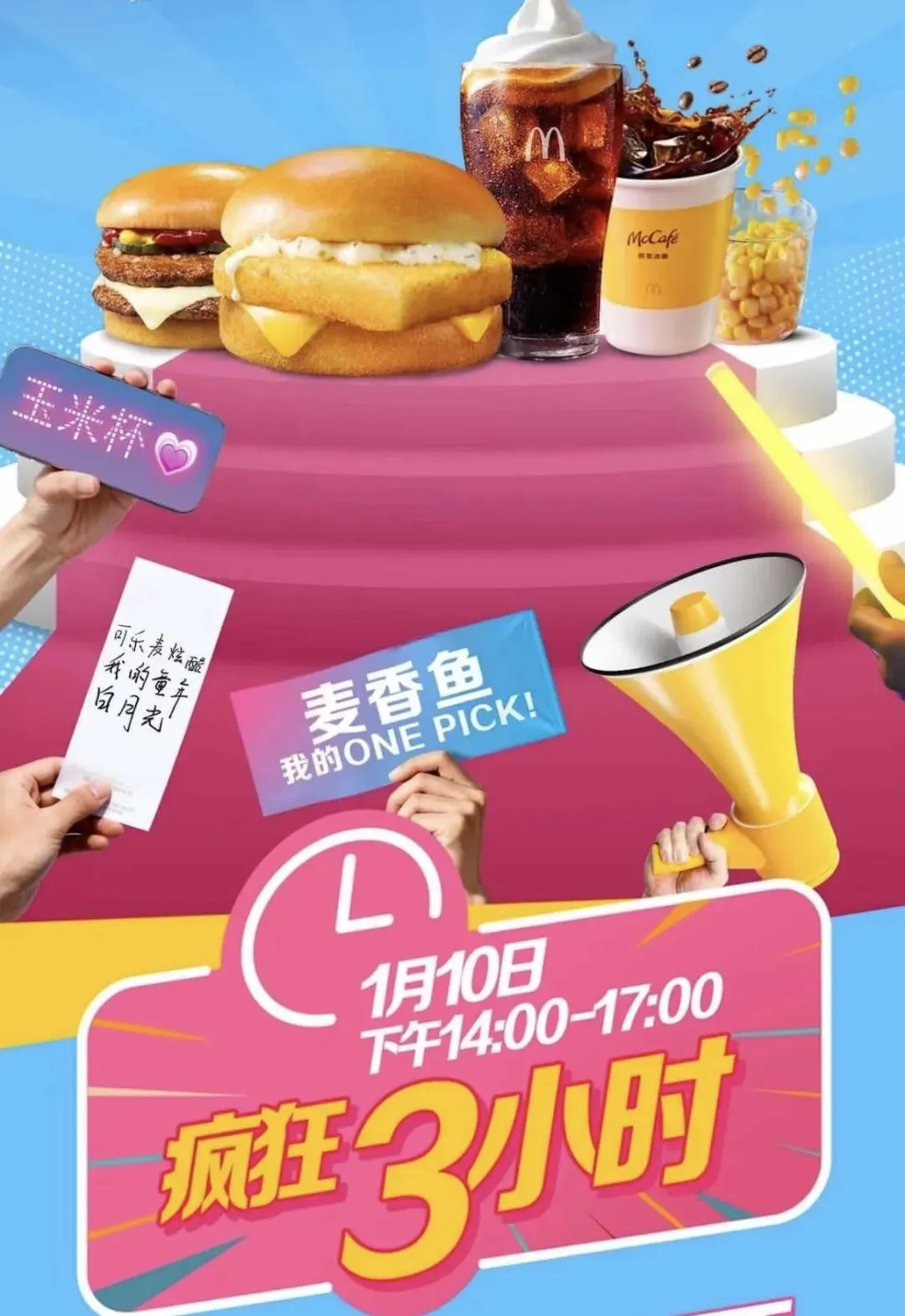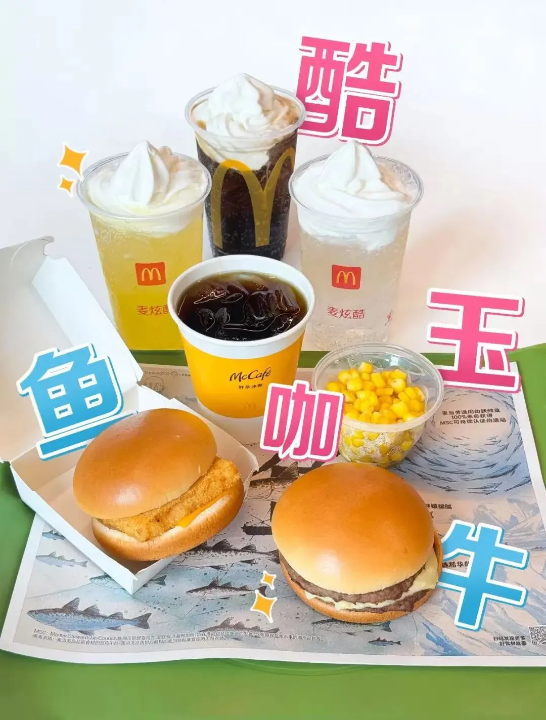 可乐麦炫酷、鲜萃冰咖、小玉米杯,
