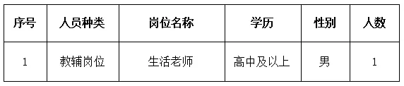 因学校实际用人需求,现招聘生活老师(男)1名。