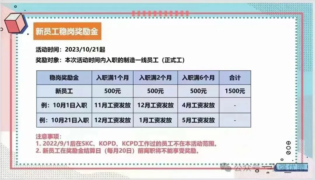 新进员工入职满一个月企业直接奖励300,入职满两个月奖励500,入职满三个人奖励700,满六个月在奖励1000元。