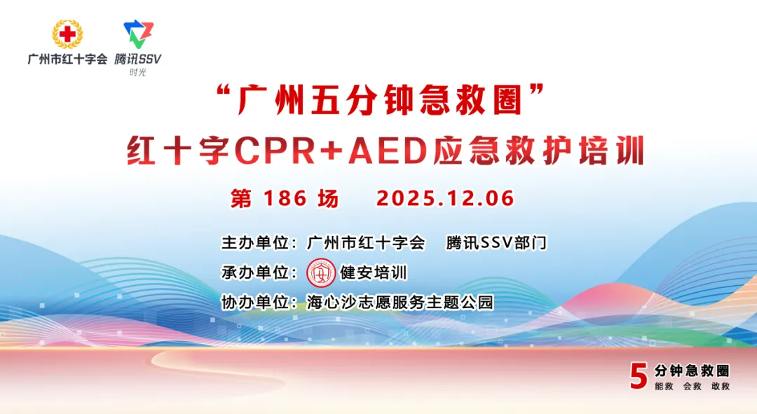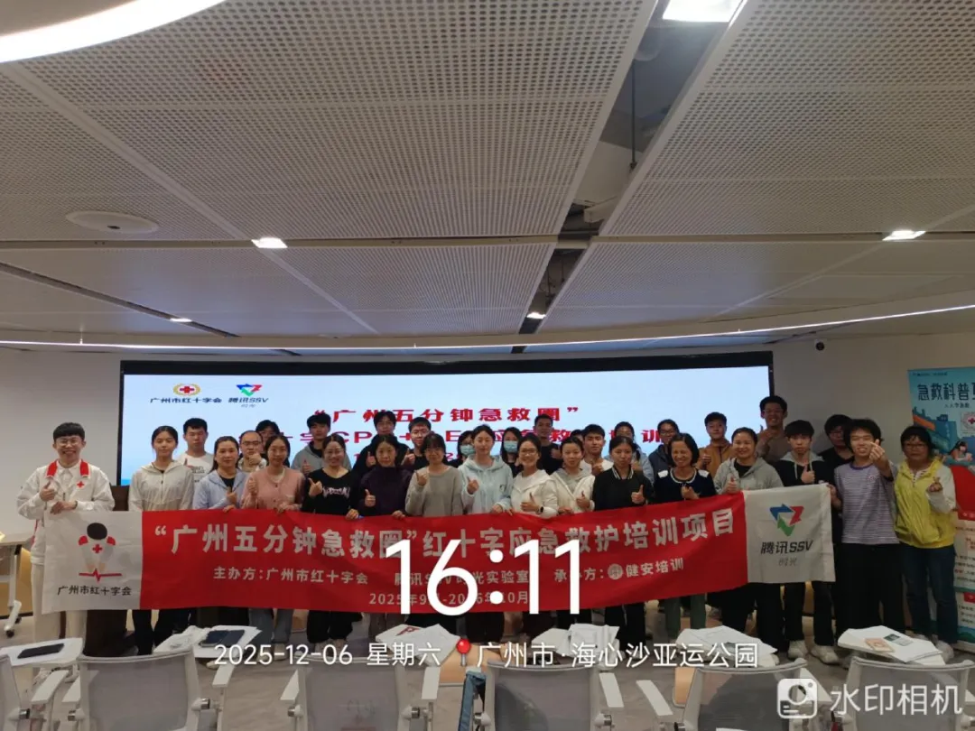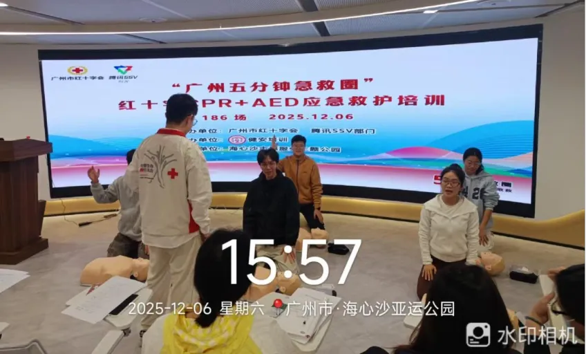 志愿红闪耀城市地标,急救培训赋能文明实践。2025年12月6日,由广州市红十字会、腾讯SSV部门联合主办的“广州五分钟急救圈”应急救护培训项目,在海心沙志愿服务主题公园开展了一场别开生面的CPR+AED急救培训,30名志愿者齐聚一堂学习专业急救技能,中国红十字会党组成员、副会长王斌调研志愿服务开展情况,为项目推进和志愿者学习加油鼓劲。