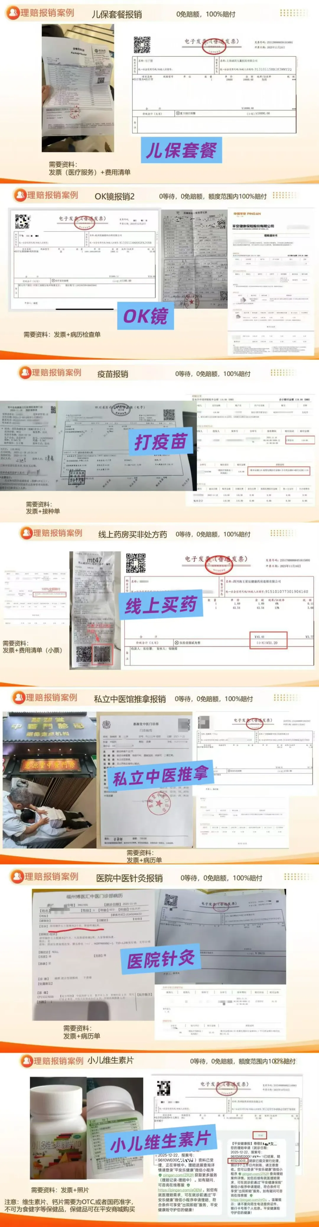 儿保、疫苗、门诊、看牙、住院、买药、体检、推拿、牙科、配眼镜、中医理疗、近视手术、包皮手术、美团/京东线上买药、公立、私立……都能报。(或者你还有未列出来的情况想问,可+我单独咨询:vickyz921)