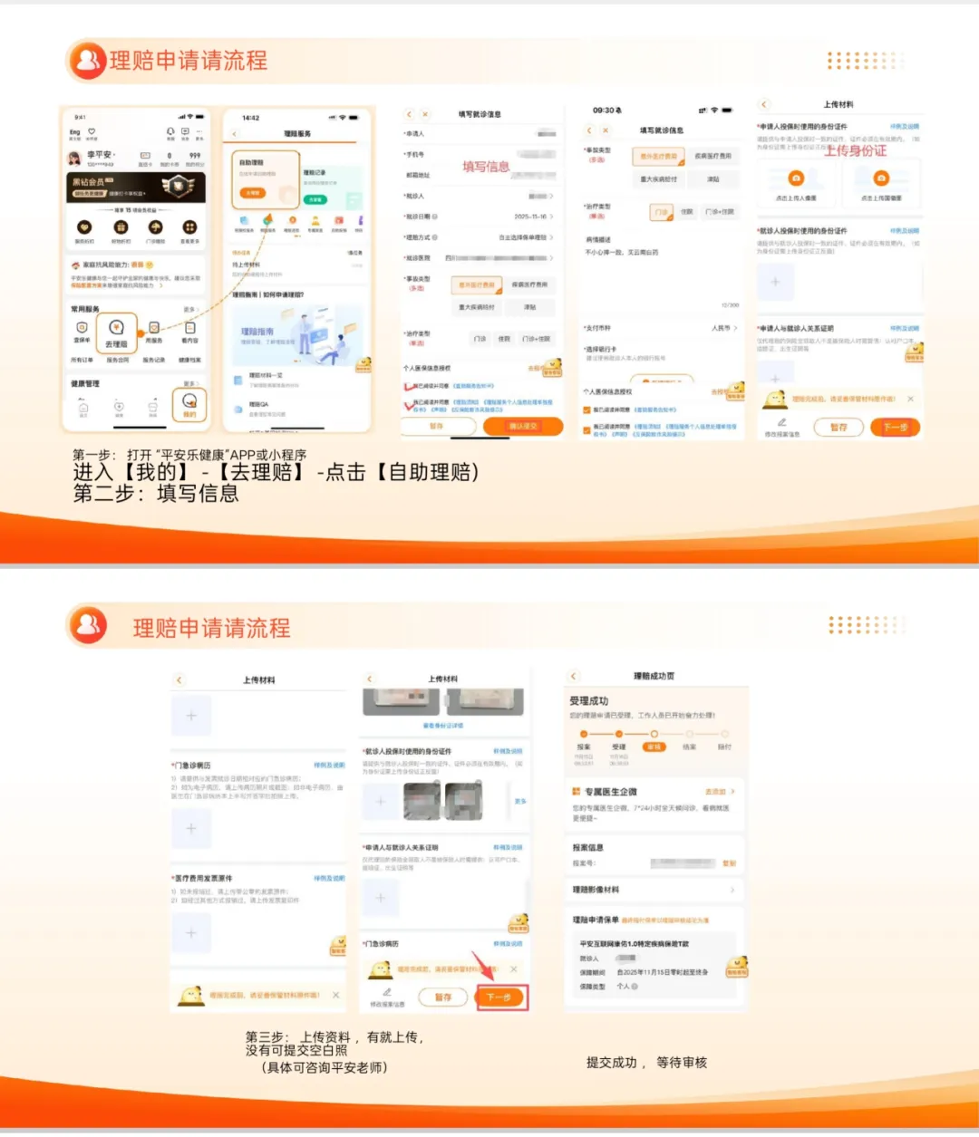 其他的,走报销流程,是在 平安乐健康 的APP或者小程序上进行:我的-去理赔-发起理赔。