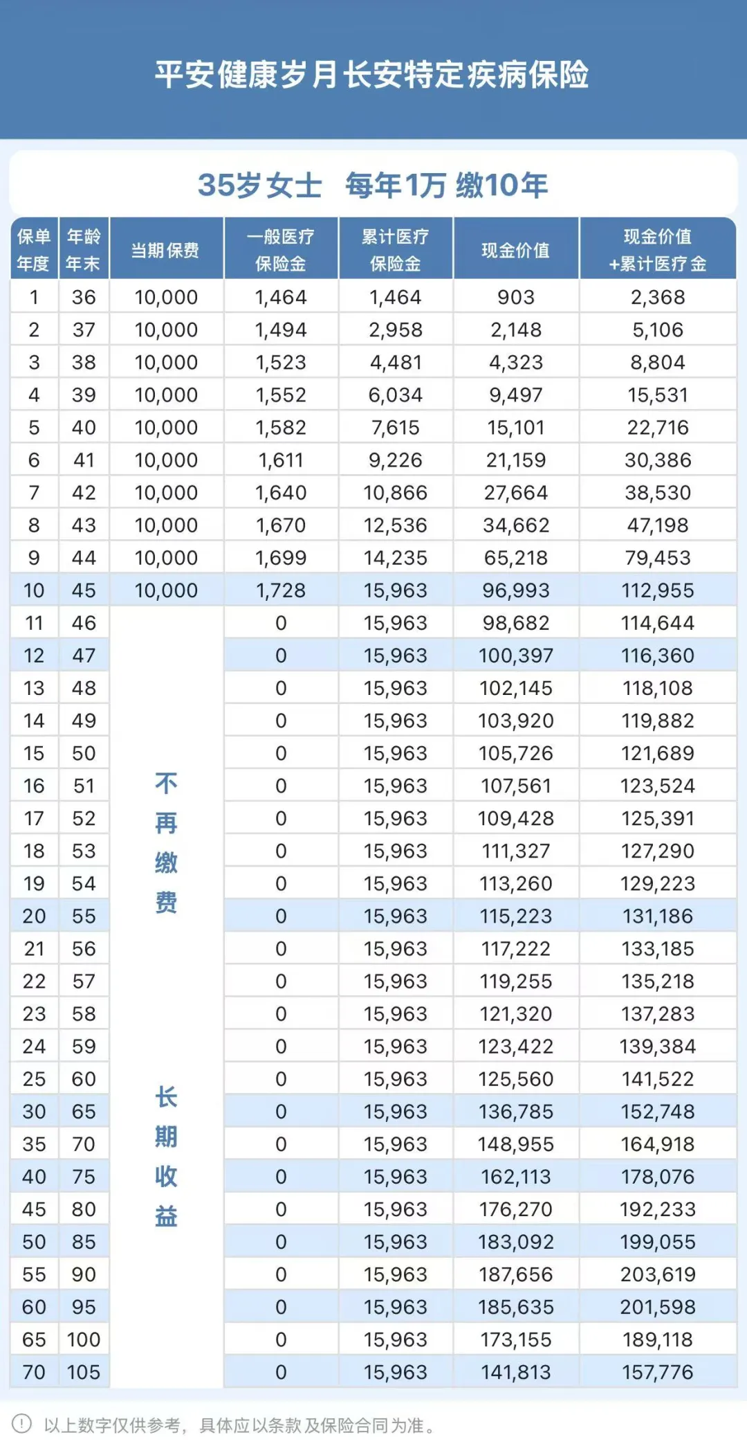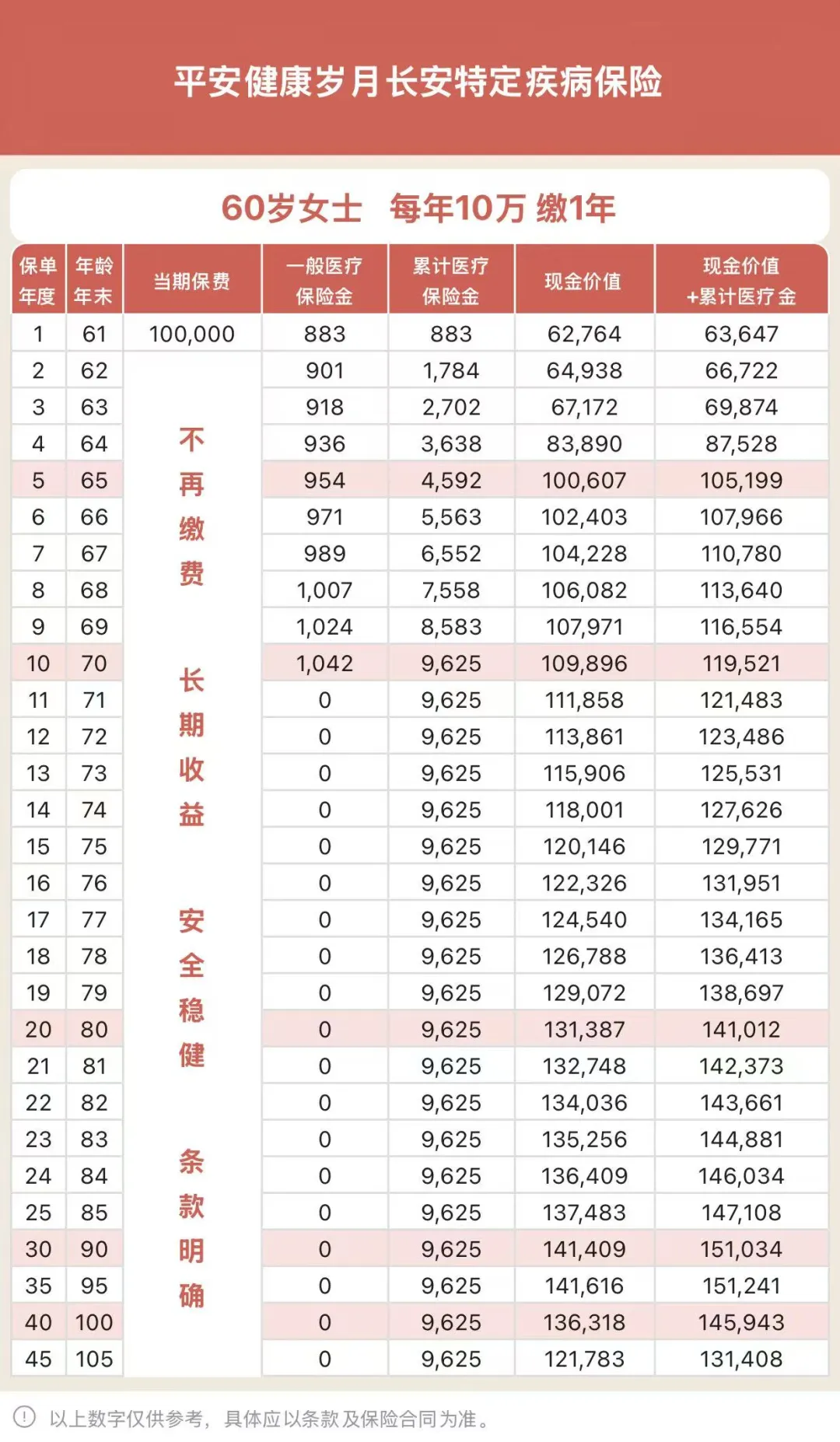 这个产品是平安健康出的,健康险公司,想做储蓄产品,出于合规,不能叫年金险,所以它的全名后面几个字是疾病险,然后它也不能像年金险那样每年返现金,所以就以报销医疗金的形式实现返还。