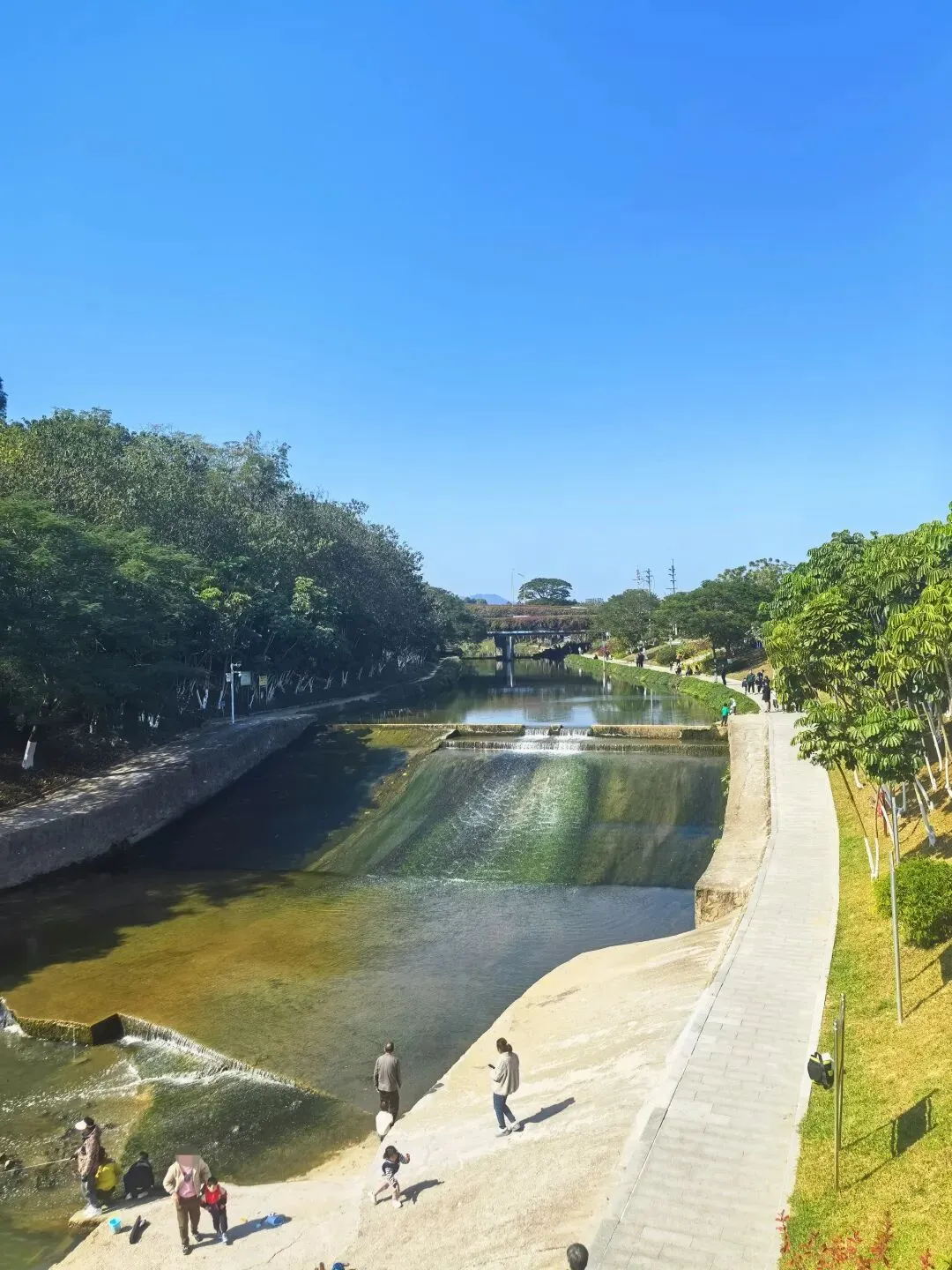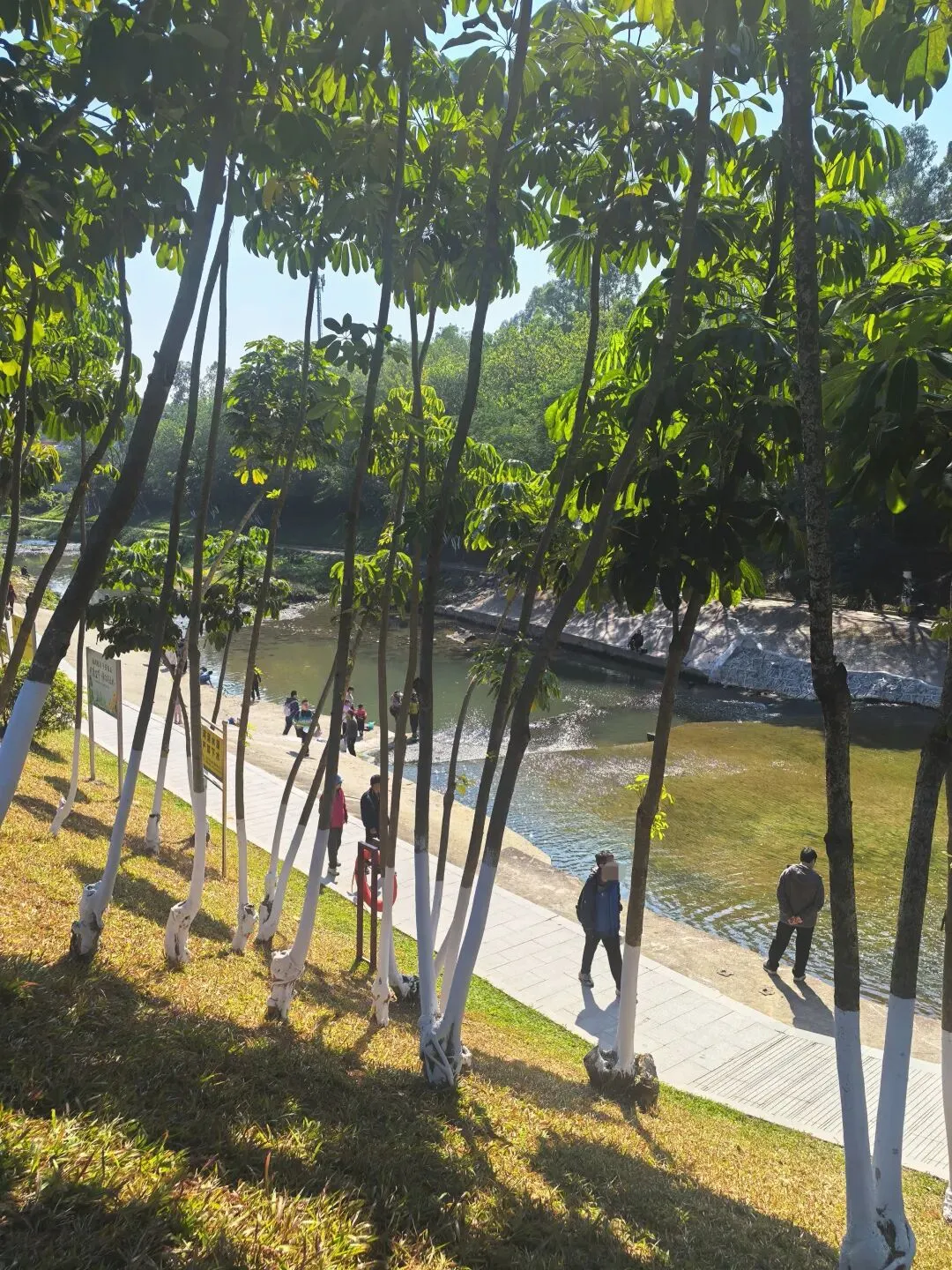公园旁边还有一条河涌。很多人在钓鱼捞鱼或者玩水。河里真的好多鱼,沿着河边一路往下走,看到的都是一群群的鱼儿。