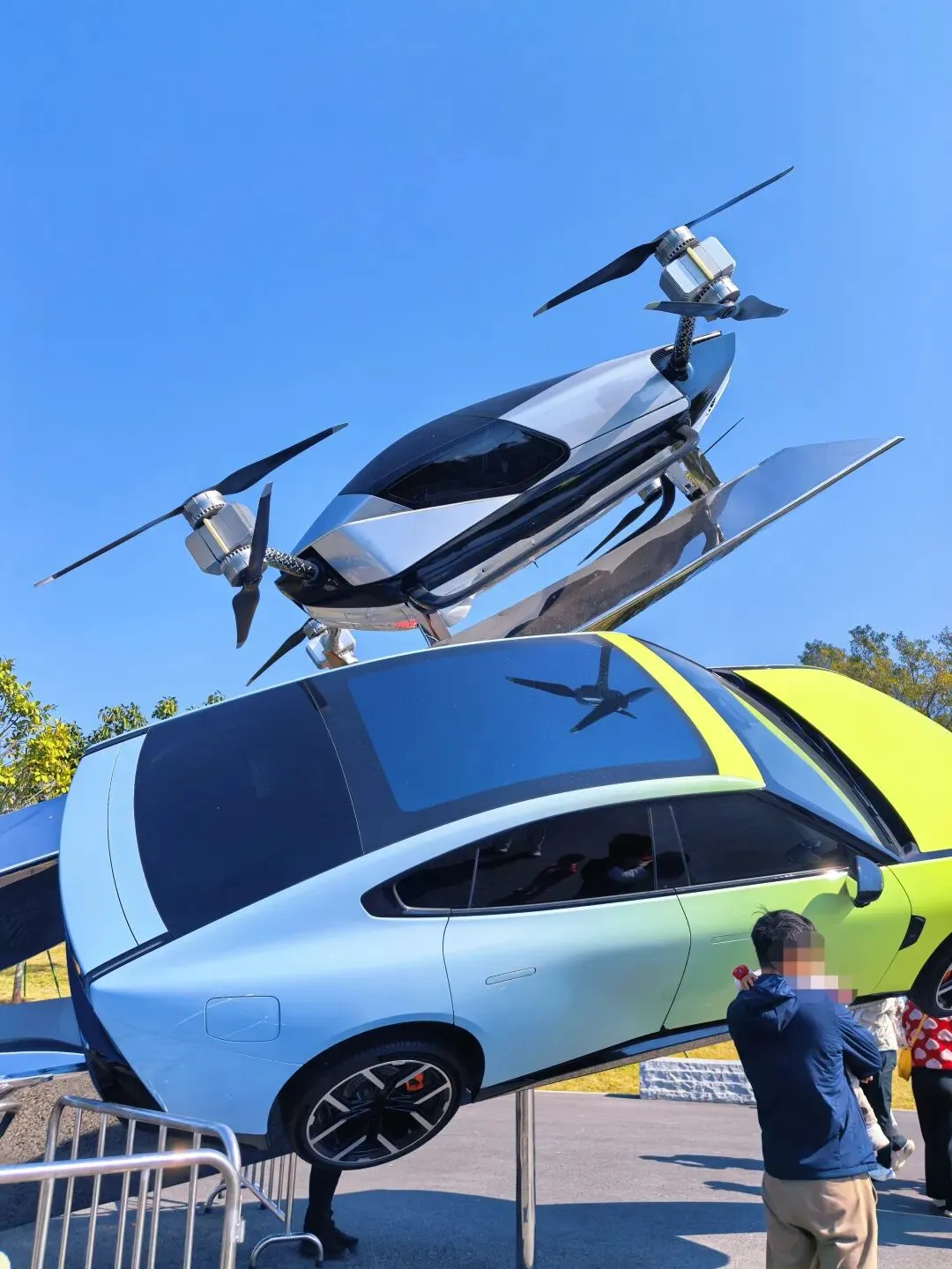 公园的另一边,科技感来了,未来飞车,悬在半空的汽车,野性中带着科技感,也很吸引人。