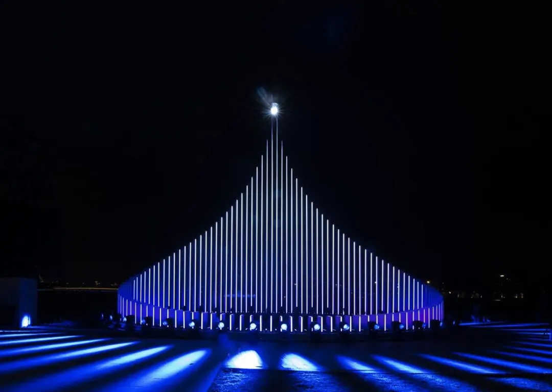 白天,装置在自然光下呈现水滴般清澈通透的质感,与周边环境和谐共生;夜晚,光影如涟漪般缓缓泛起,邀请人们靠近、徜徉其中。塔中心的触发装置让音乐与光影实时交织互动,打造出沉浸式的视听体验。