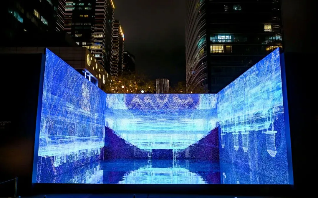 这是一件粒子建筑动态影像作品,艺术家通过精密算法将深圳标志性建筑转化为持续流变的粒子形态,用数字化语言模拟出城市的不断变化、生长与迭代。光影粒子的聚散流转,既展现了城市发展的动态韵律,也隐喻着深圳开放包容、不断突破的城市特质。