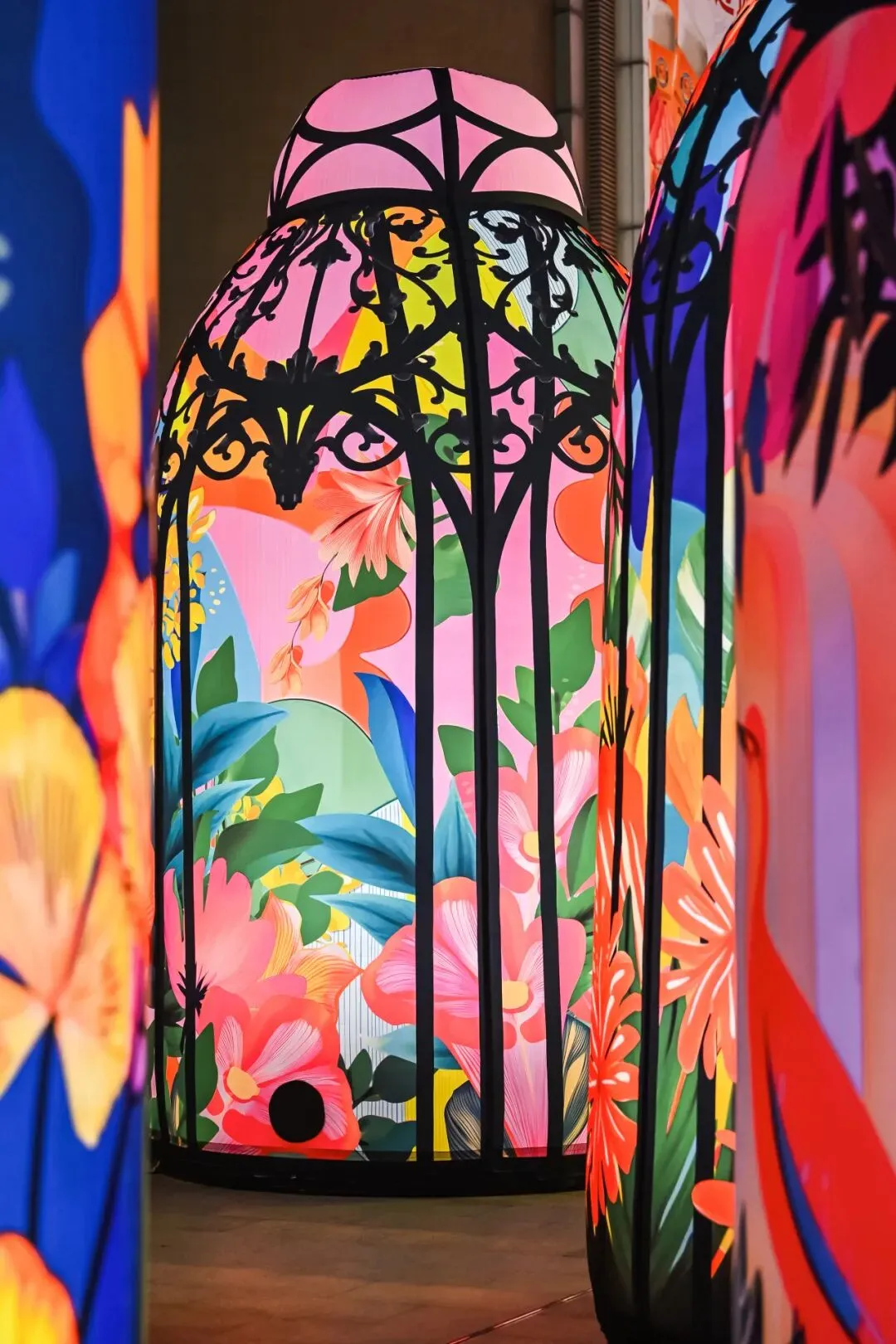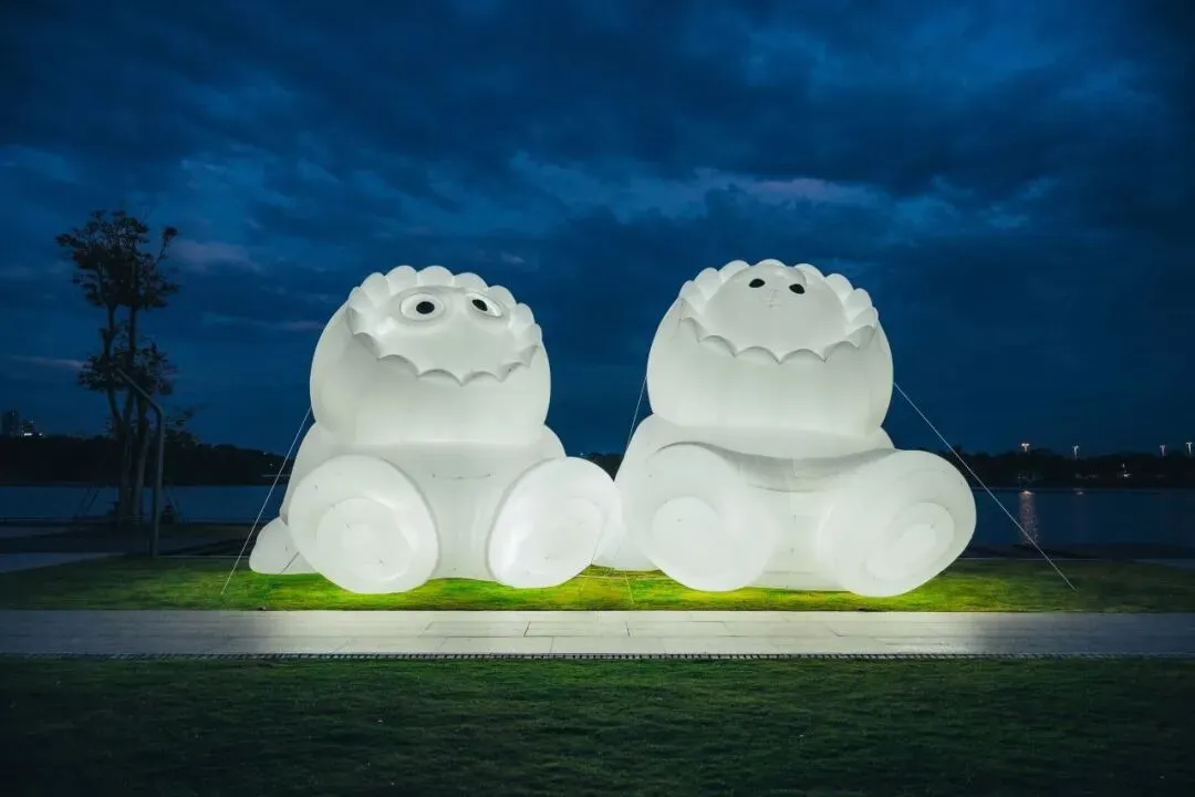 作品由回收材料打造而成的充气雕塑构成,践行环保理念的同时,更赋予作品独特的肌理与温度。雕塑散发着低调柔和的微光,将绘制其上的热带花卉、鸟兽图案映照得格外鲜活灵动,仿佛赋予作品生命气息。这种设计,让环保与艺术完美融合,传递出可持续发展的理念。