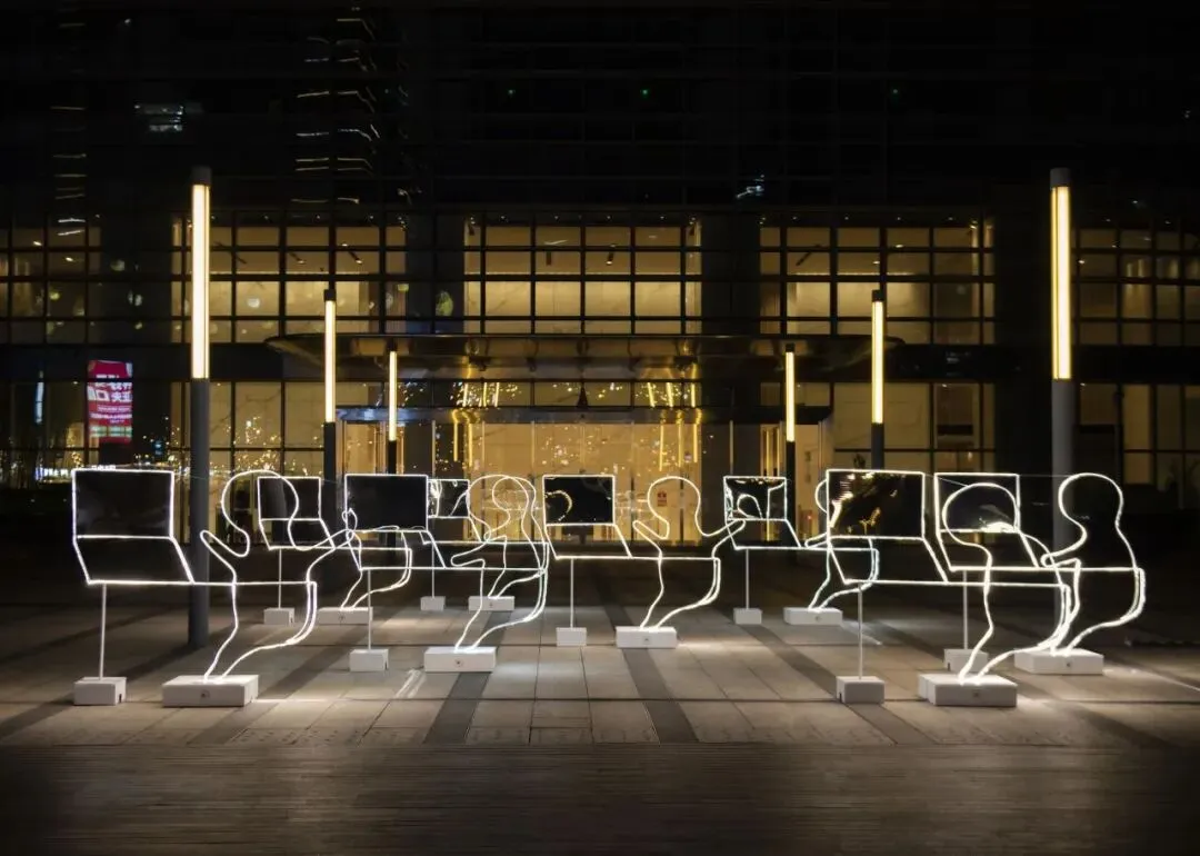 作品以深圳城市奋斗者的日常为核心灵感,用细腻光影勾勒出几个在电脑桌前专注工作的抽象人影,精准捕捉被屏幕光包裹、在时间缝隙中奋力前行的都市创造者群像。当观众走近时,人影轮廓会发出耀眼金光,镜面反射出重叠交织的光影,形成一条无形的城市能量回路。作品深刻传递出“每个人都在闪闪发光”的温暖寓意,致敬每一位为城市发展拼搏的奋斗者。