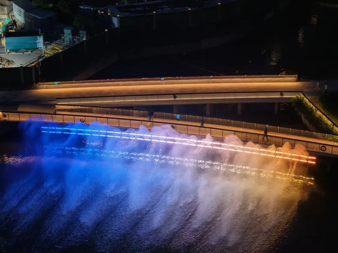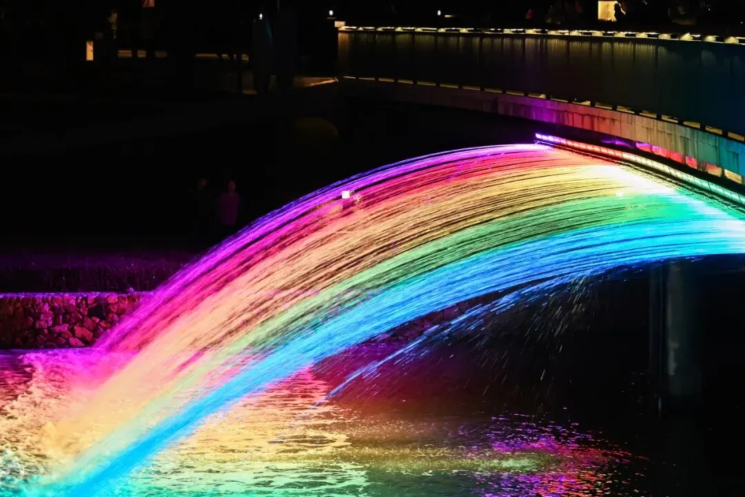 作品以水幕与喷泉为载体,结合精准的灯光编程与音乐节奏,变幻出各式绝美形态:时而如灵动精灵轻盈起舞,时而如磅礴瀑布奔涌而下,时而如星光散落温柔闪烁,让每位观赏者都沉浸其中、印象深刻。