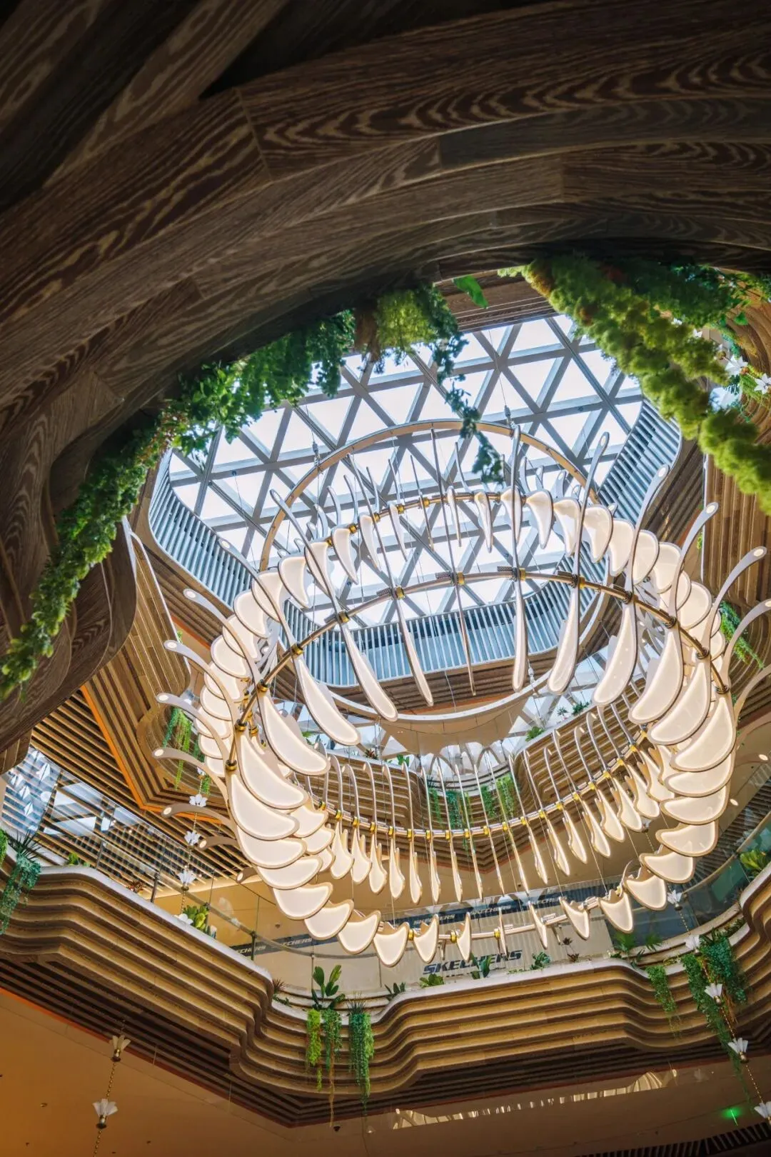 作品采用优美的螺旋形状,设计灵感源自鱼群洄游、贝壳旋纹到浩瀚星系的自然规律,蕴含着大自然中无限的美丽与蓬勃力量,兼具优雅质感与视觉张力。在能源使用上,作品选用太阳能电池将太阳能转化为电能,再转化为电机的动能驱动装置运转,完美践行低碳环保理念,实现艺术与可持续发展的共生。