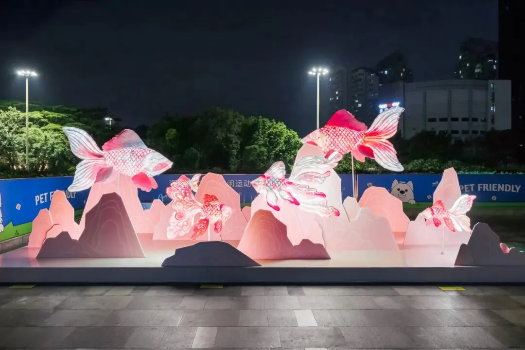 艺术家用纸雕和传统花灯手艺做了一条发光的鱼。鱼灯既保留了民间手工艺的温暖感,又通过现代的光影效果,赋予鱼灯以灵动与象征性。作品不仅展现了民间手工的温度,更在当代艺术语境中实现了传统工艺的再生与延展,让非遗文化在现代都市中焕发新生。