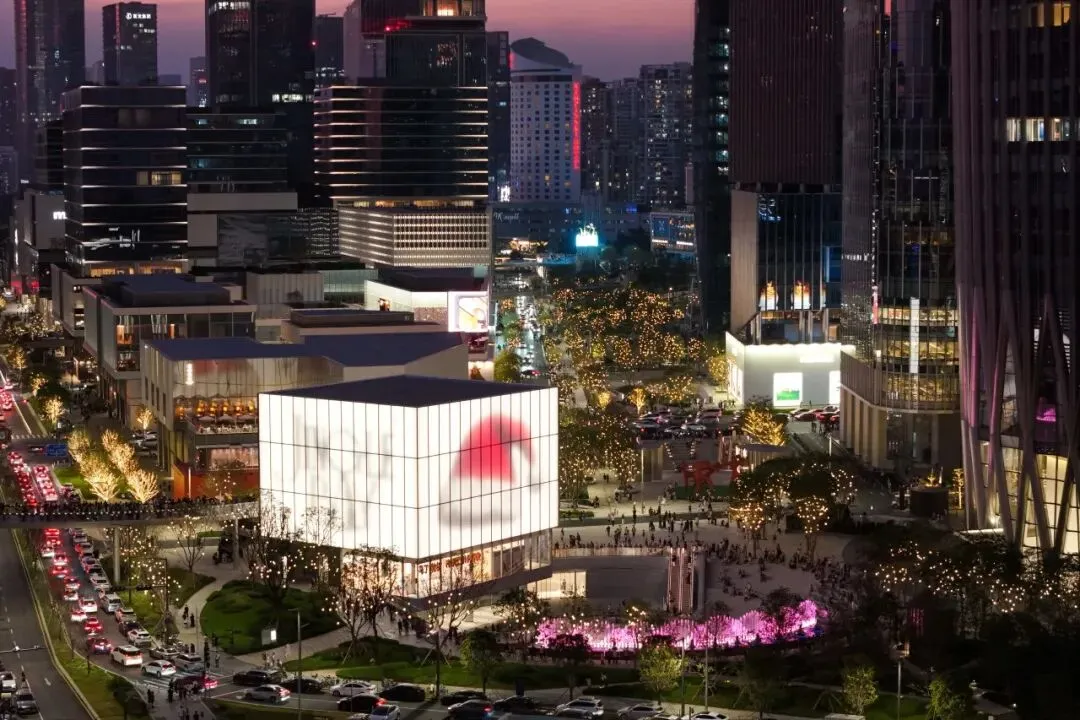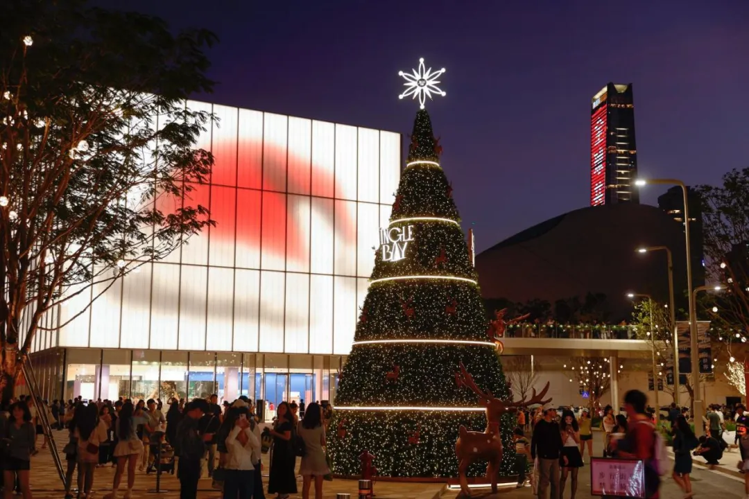 作品以深圳湾万象城为舞台徐徐展开,巨大屏幕滚动切换,化作一幅流动的城市艺术画卷,巧妙连接起圣诞节日的温馨与元旦的活力期盼。 光影与商圈氛围完美融合,为市民打造了充满节日氛围的打卡地,让艺术融入日常生活场景。