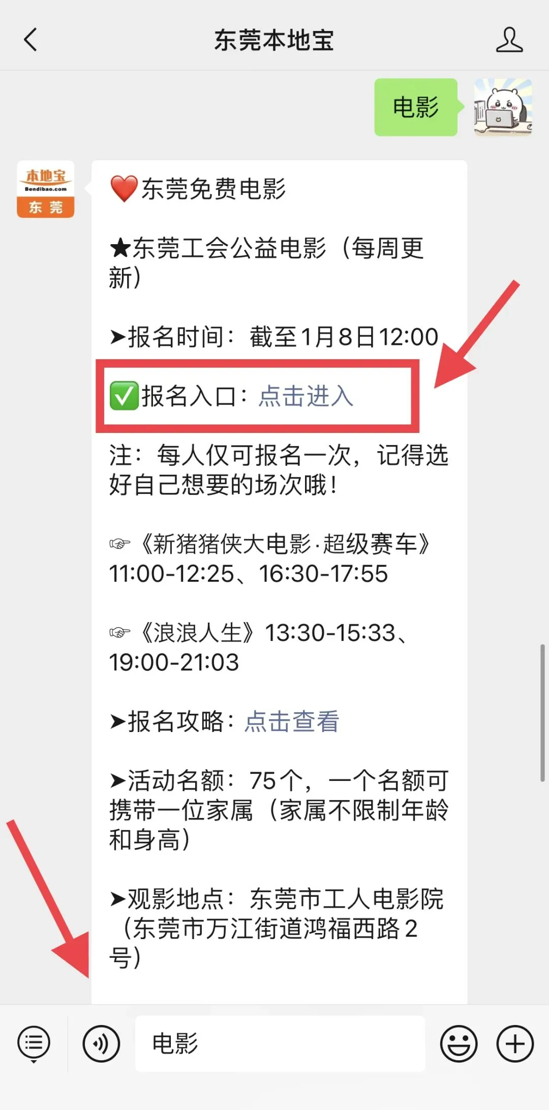 ⭐报名入口:东莞工会官微,长按识别下方二维码关注东莞本地宝,在聊天对话框回复【电影】,即可获取报名入口!